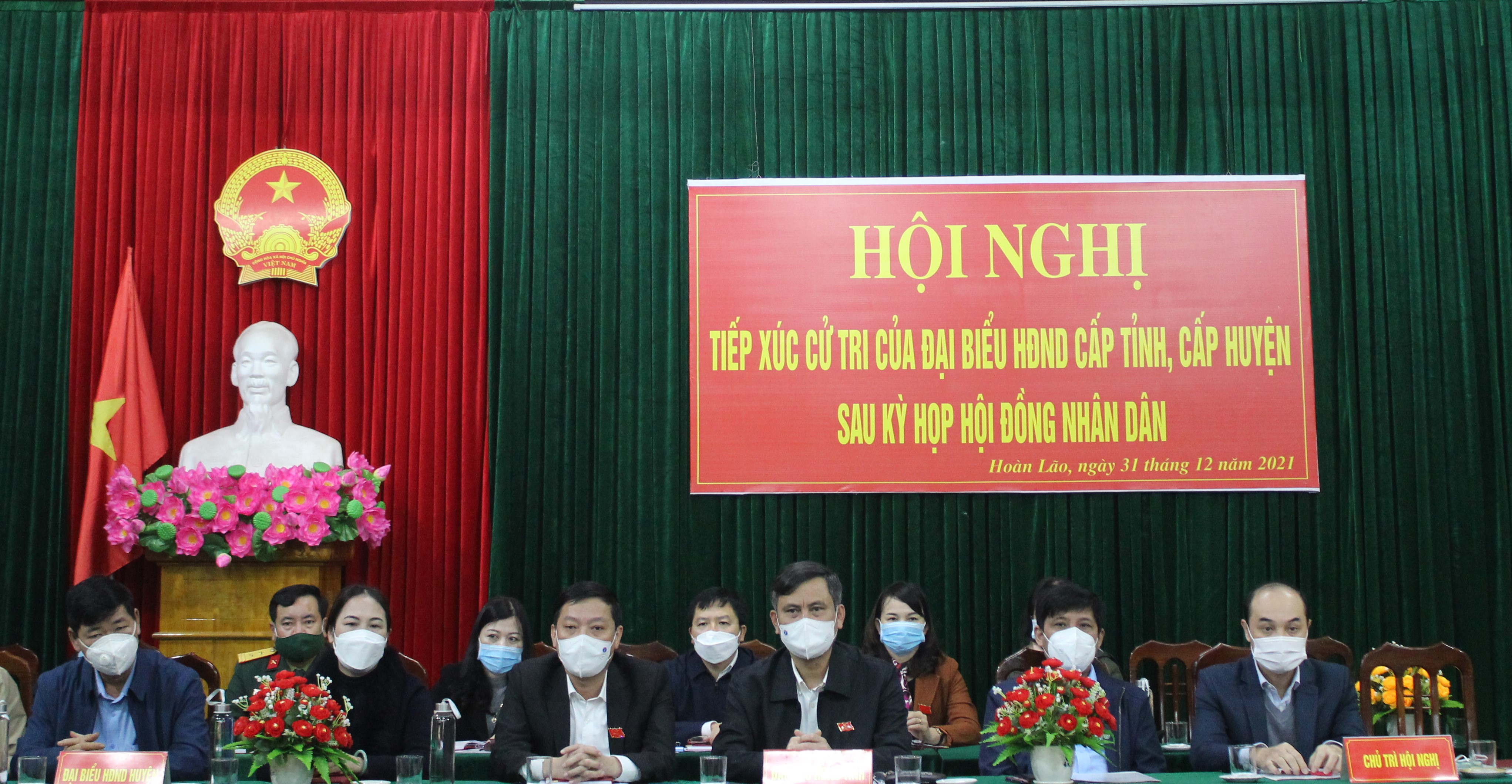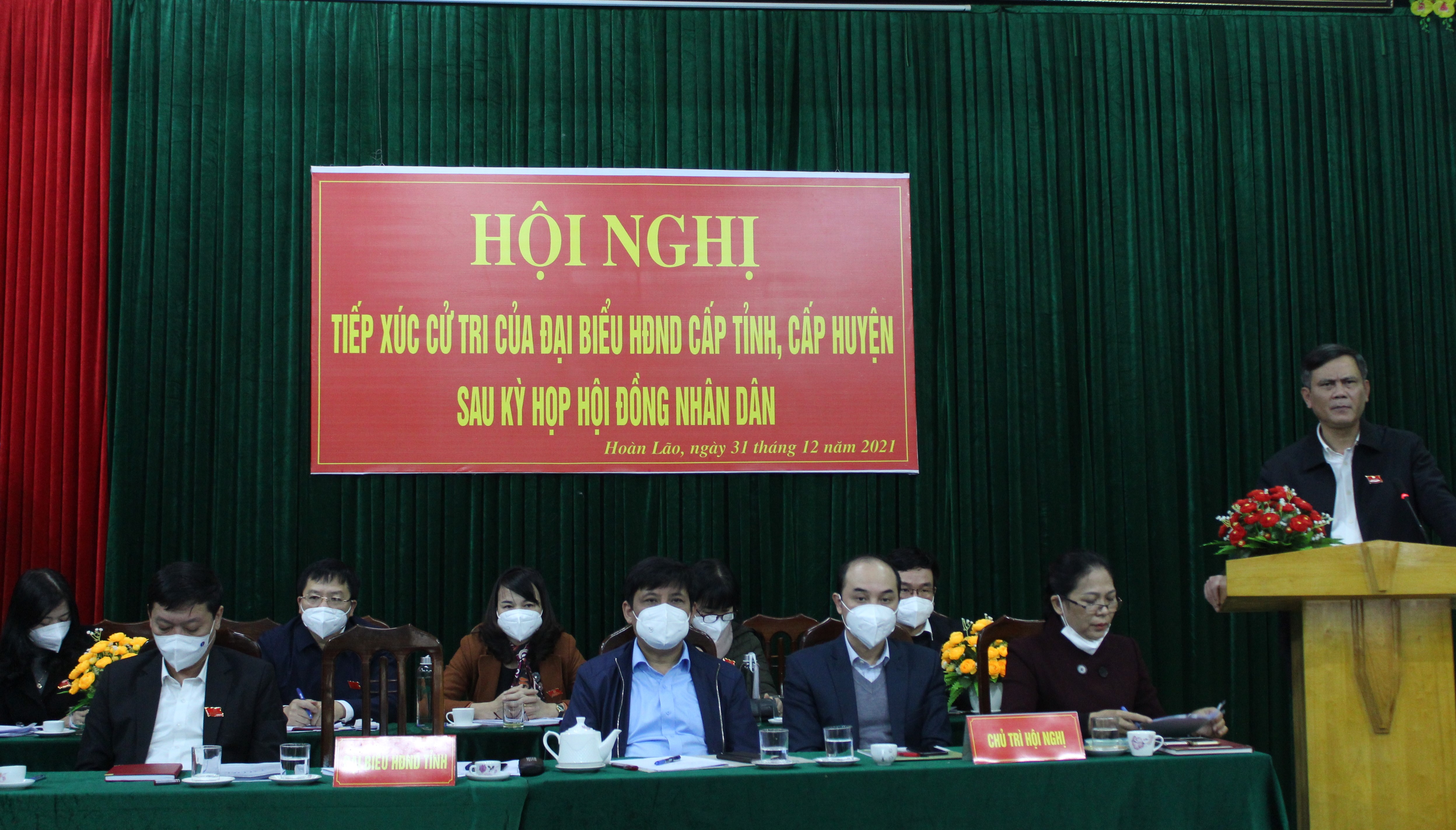 Tại buổi tiếp xúc, đại diện Tổ đại biểu HĐND tỉnh đã báo cáo với  cử tri về kết quả kỳ họp thứ 4, HĐND tỉnh khóa XVIII. Kỳ họp đ­ược tiến hành trong 03 ngày, từ ngày 08/12/2021 đến 10/12/2021 tại thành phố Đồng Hới. Tại kỳ họp có 25 loại báo cáo và 21 tờ trình, trong đó có 9 báo cáo và 21 tờ trình được trình bày trực tiếp tại kỳ họp; 16 báo cáo gửi các đại biểu nghiên cứu để xem xét, thảo luận, kỳ họp cũng đã dành thời gian thỏa đáng để các đại biểu thảo luận, chất vấn các vấn đề cử tri và Nhân dân quan tâm và thông qua 21 Nghị quyết để thể chế hóa quy định của pháp luật và các chủ trương, chỉ đạo của Trung ương, của Tỉnh ủy, trong đó có nhiều Nghị quyết là cơ sở pháp lý, tiền đề cho việc triển khai tổ chức thực hiện nhiệm vụ phát triển kinh tế - xã hội cho năm 2022 và cả giai đoạn 2022 - 2025;...