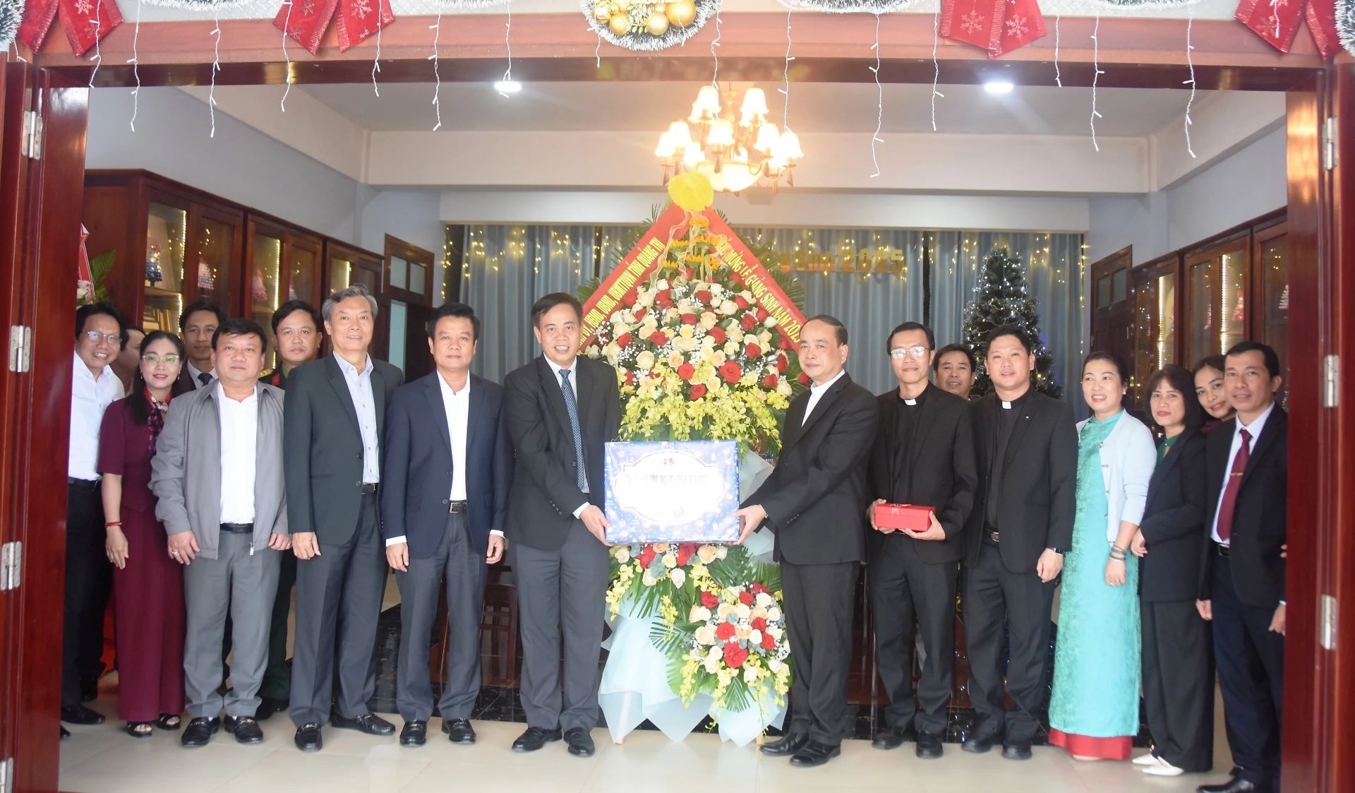 Tại đây, đồng chí Nguyễn Đăng Quang, Phó Bí thư Tỉnh ủy, Chủ tịch HĐND tỉnh vui mừng thông tin một số kết quả nổi bật về kinh tế - xã hội, hoạt động của bộ máy chính quyền địa phương sau sáp nhập, công tác an sinh xã hội năm 2025. Đồng thời ân cần thăm hỏi sức khỏe, tặng hoa và quà chúc mừng các vị linh mục, chức sắc, tu sĩ cùng toàn thể đồng bào giáo dân nhân dịp Giáng sinh năm 2025 và chuẩn bị diễn ra Đại hội Đức mẹ La Vang năm 2026.