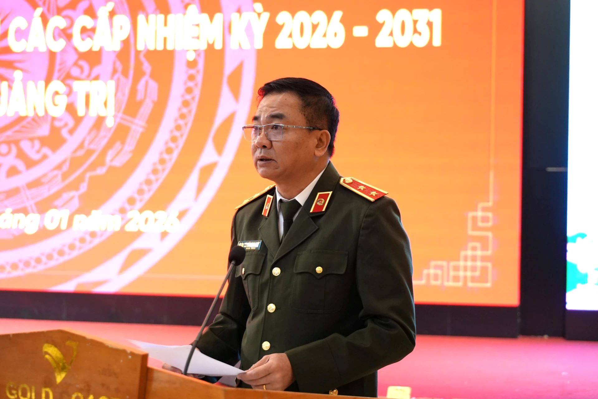 Đồng chí Hoàng Nam, Phó Chủ tịch Thường trực UBND tỉnh báo cáo tình hình triển khai công tác bầu cử ĐBQH khóa XVI và đại biểu HĐND các cấp nhiệm kỳ 2026 - 2031 của tỉnh Quảng Trị