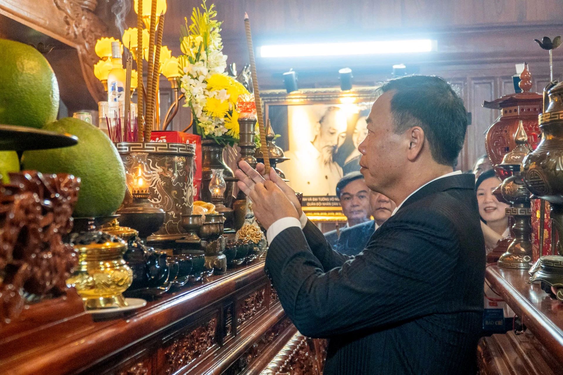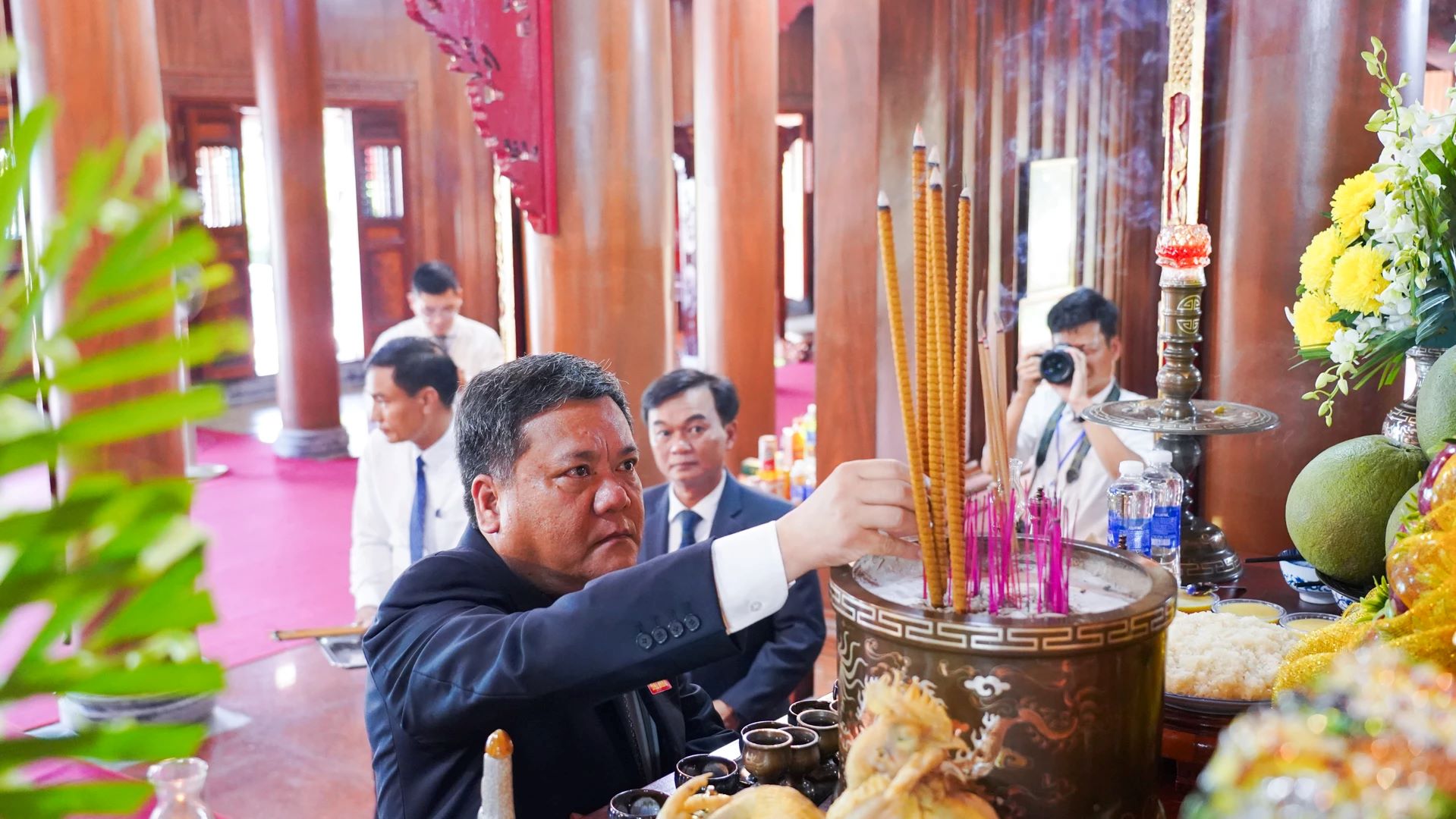 Trước anh linh Chủ tịch Hồ Chí Minh và các AHLS, đoàn đại biểu dự Đại hội đại biểu Đảng bộ tỉnh Quảng Trị lần thứ I, nhiệm kỳ 2025-2030 kính cẩn dâng nén tâm hương bày tỏ lòng thành kính, biết ơn vô hạn công lao to lớn, sự hy sinh cao cả của Chủ tịch Hồ Chí Minh và các AHLS đối với sự nghiệp cách mạng dựng nước và giữ nước.