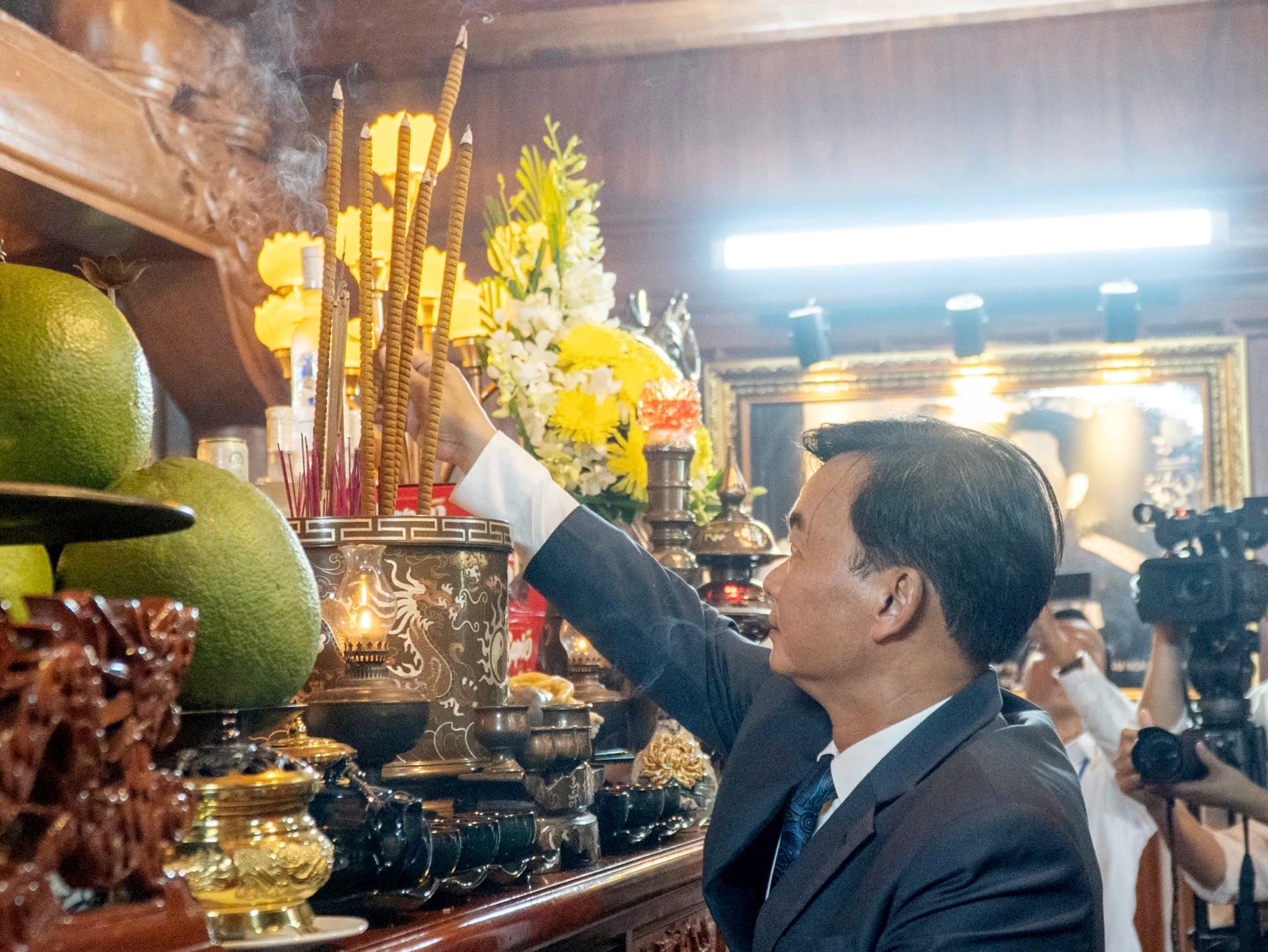 Đồng chí Chủ tịch UBND tỉnh Trần Phong dâng hương tưởng nhớ Bác Hồ và các Anh hùng liệt sĩ
