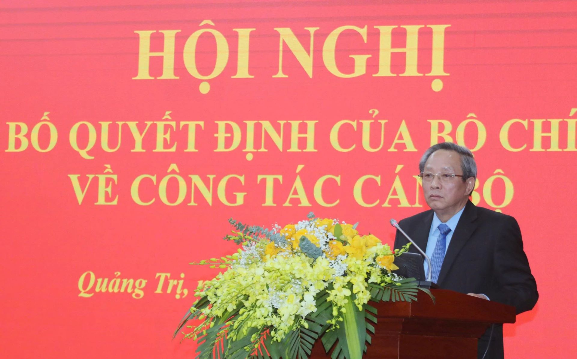 Đồng chí Phó trưởng Ban Thường trực Ban Tổ chức Trung ương Hoàng Đăng Quang công bố quyết định của Bộ Chính trị về công tác cán bộ