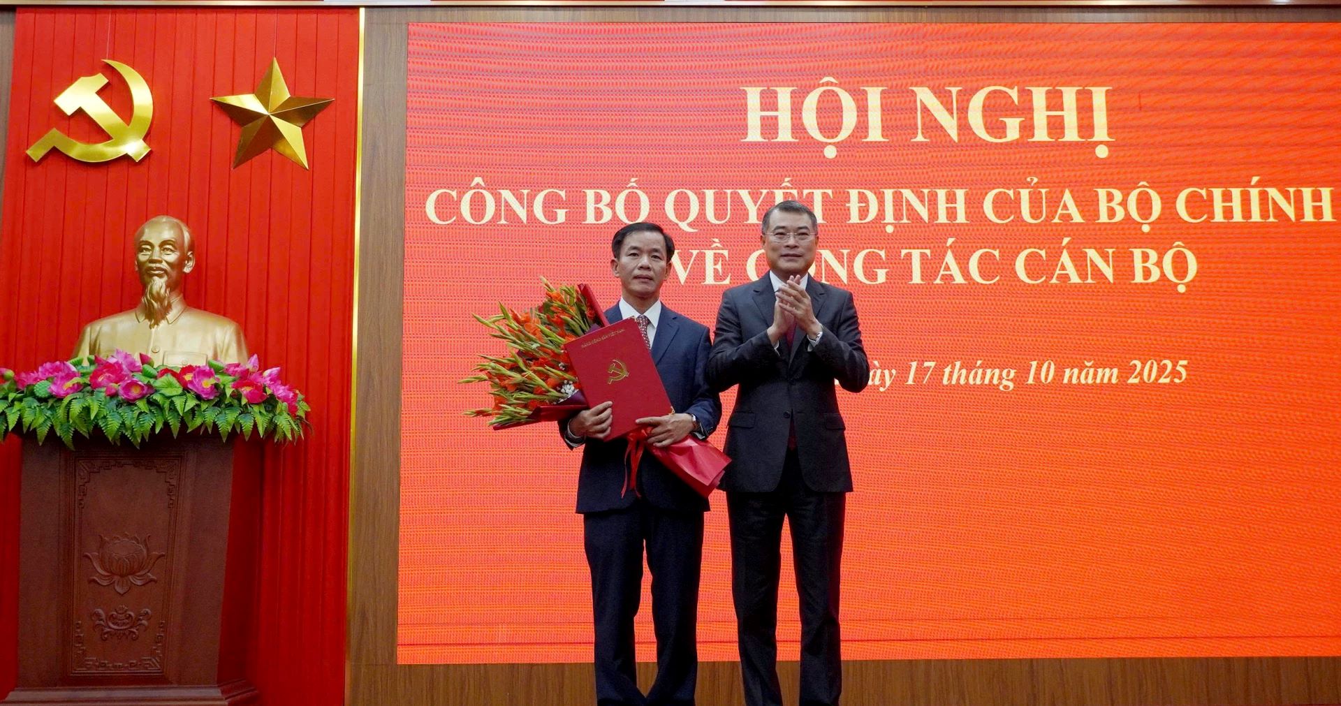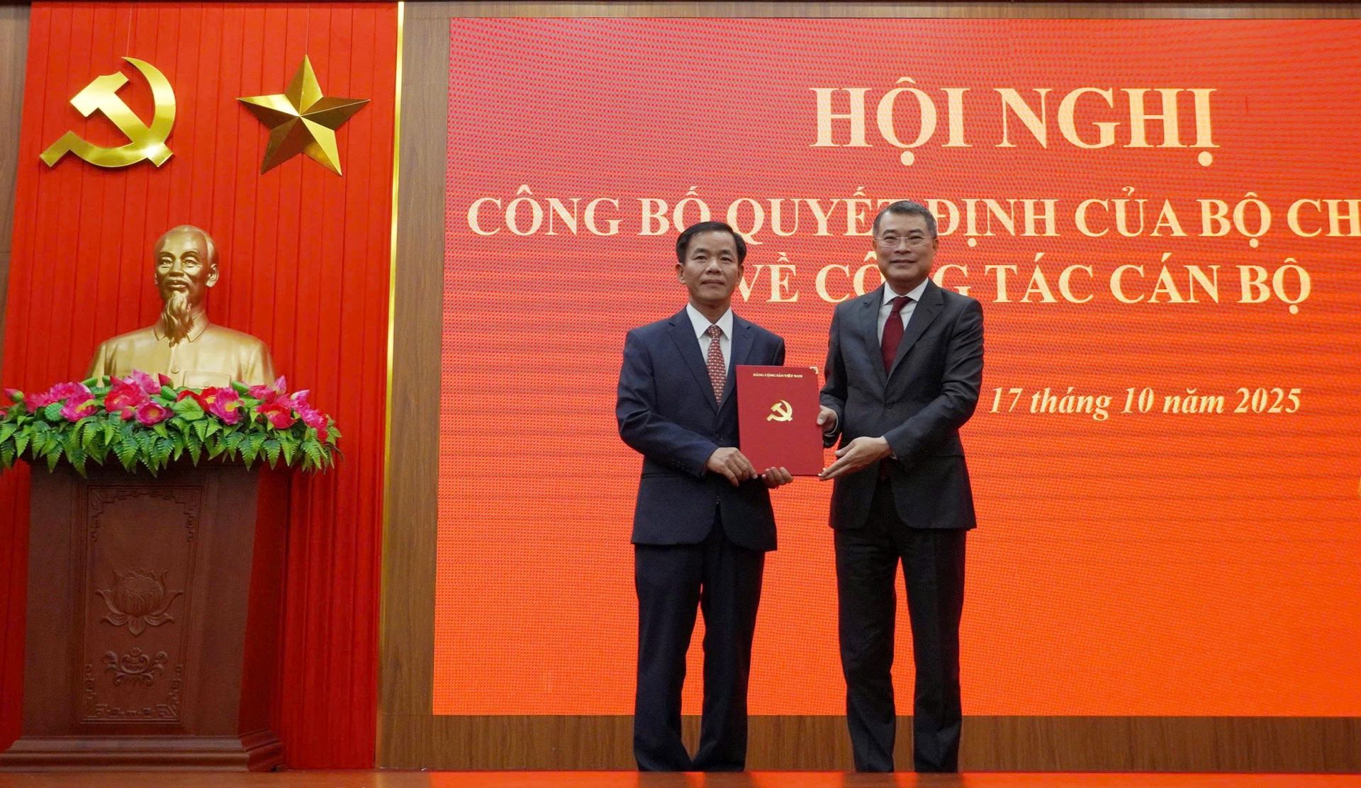 Đồng chí Trưởng ban Tổ chức Trung ương Lê Minh Hưng trao quyết định của Bộ Chính trị chỉ định đồng chí Nguyễn Văn Phương giữ chức Bí thư Tỉnh ủy Quảng Trị nhiệm kỳ 2025-2030