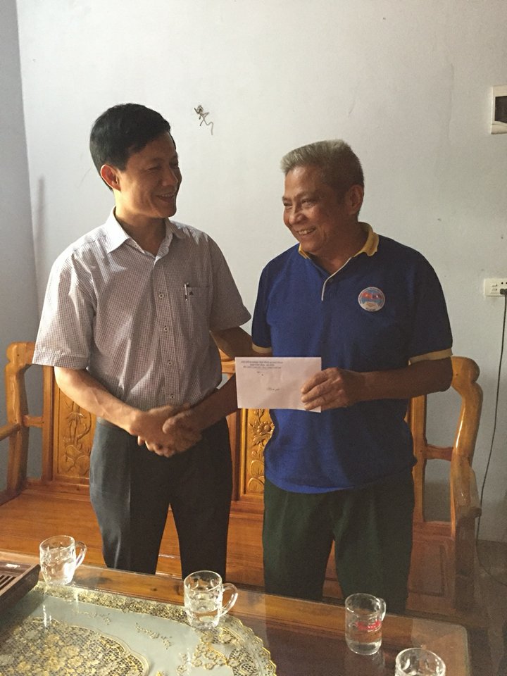 Đồng chí Phan Trần Nam, Phó Trưởng ban văn hóa - xã hội trao quà cho gia đình chính sách