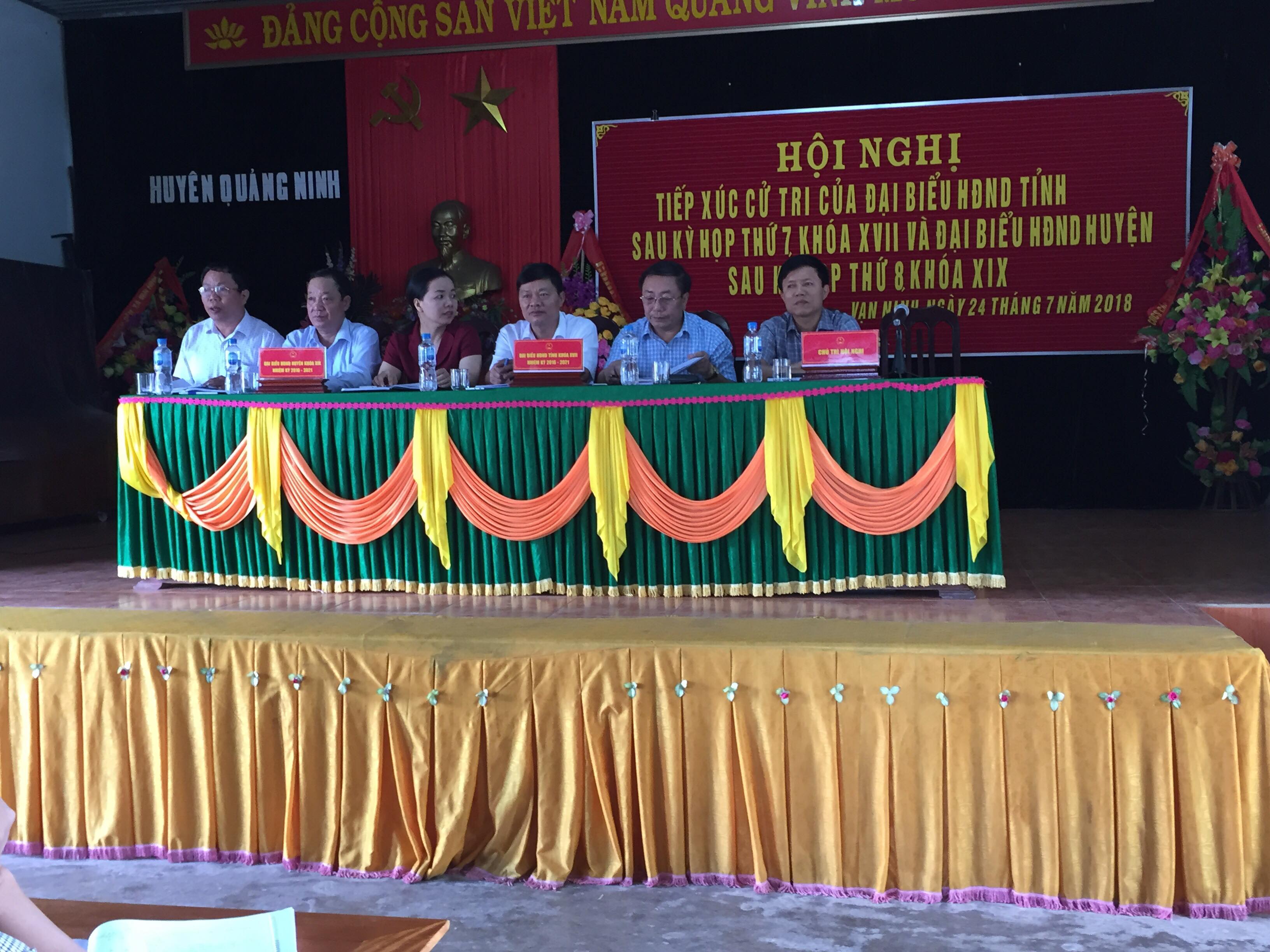 Sau khi nghe các ý kiến kiến nghị của cử tri, đại diện lãnh đạo huyện Quảng Ninh đã trả lời những vấn đề thuộc thẩm quyền. Những ý kiến còn lại sẽ được tổ đại biểu HĐND tỉnh tập hợp và chuyển đến các cơ quan chức năng xem xét, giải quyết.