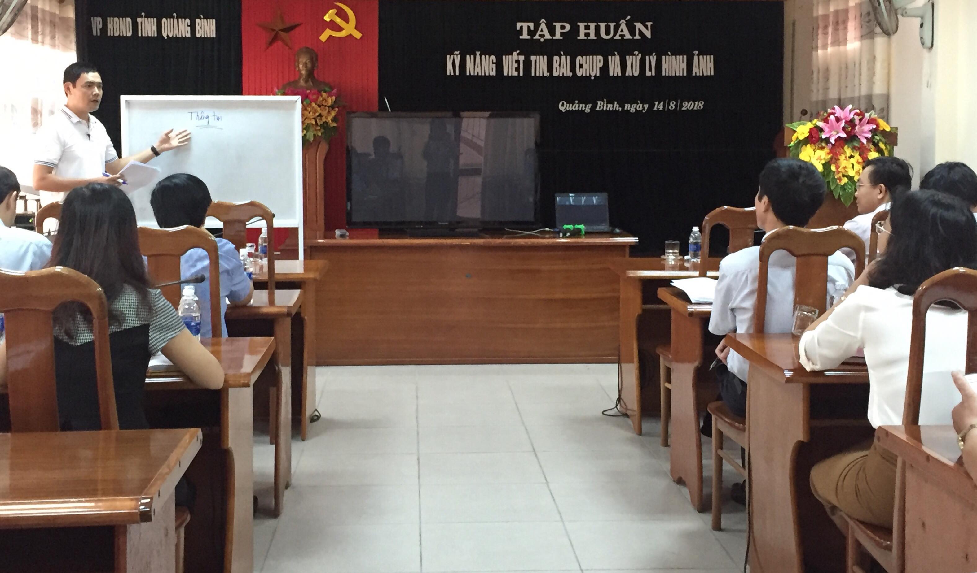 Tại lớp tập huấn, Nhà báo Phan Anh Tuấn – Thư ký tòa soạn Báo Quảng Bình đã truyền đạt những kiến thức và thực hiện những kỹ năng nền tảng viết tin, bài; phương pháp khai thác, thu thập và xử lý thông tin; kinh nghiệm khi làm phỏng vấn … Nhà báo Xuân Hoàng – Phóng viên Báo Quảng Bình giới thiệu về kỹ năng chụp, xử lý ảnh đăng tải trên Trang tin điện tử.