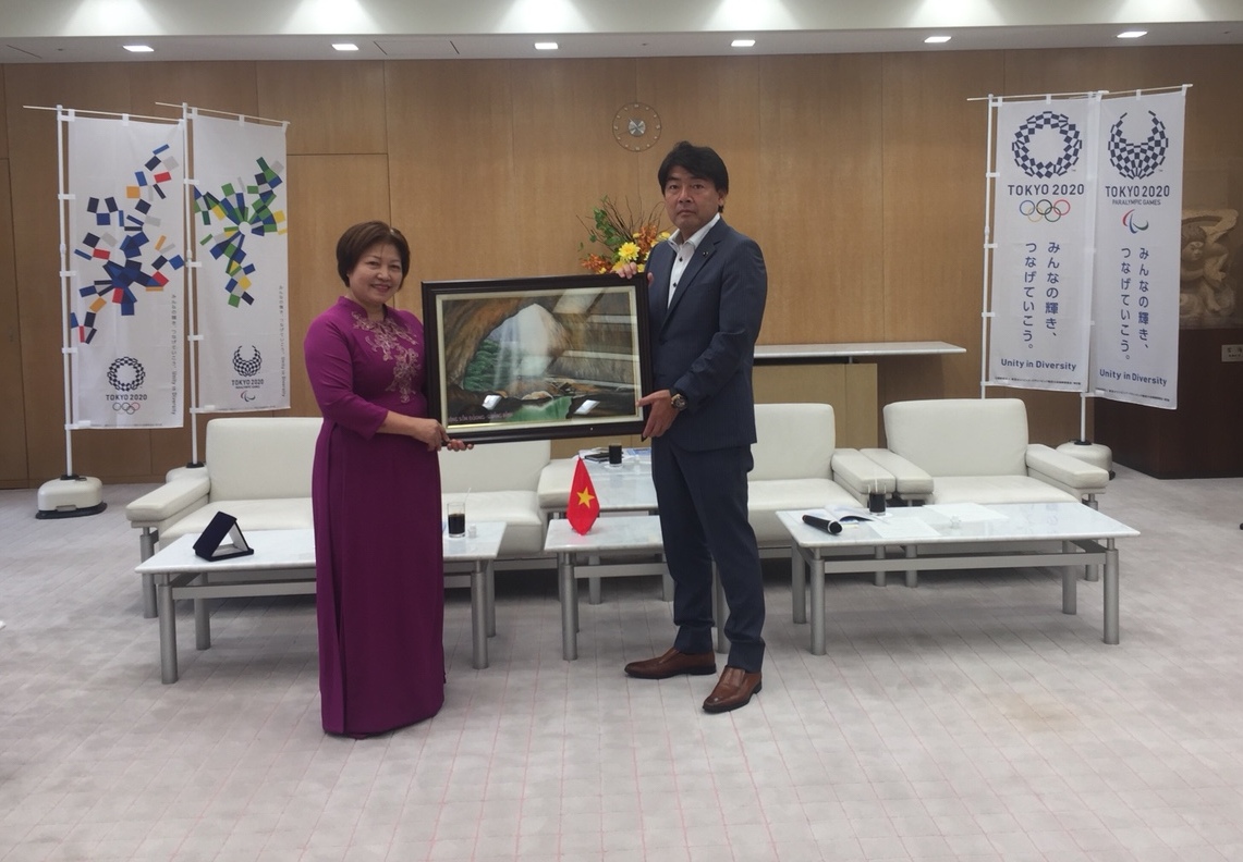 Đồng chí Nguyễn Thị Thanh Hương trao quà và giới thiệu về Hang Sơn Đoòng với Hội đồng thành phố Tokyo