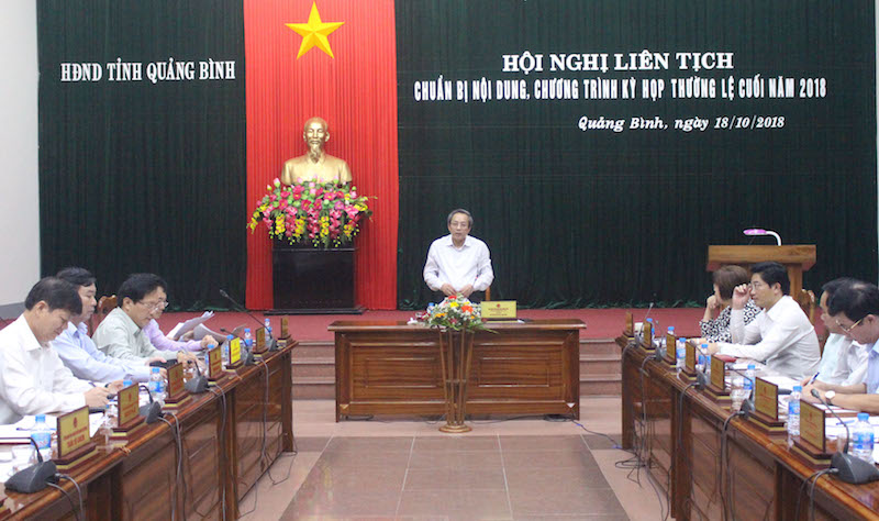 Sáng ngày 18/10/2018, Thường trực HĐND tỉnh tổ chức hội nghị liên tịch để chuẩn bị nội dung, chương trình kỳ họp thường lê cuối năm 2018, HĐND tỉnh khóa XVII. Đồng chí Hoàng Đăng Quang, UVTW Đảng, Bí thư Tỉnh ủy, Chủ tịch HĐND tỉnh chủ trì hội nghị.
