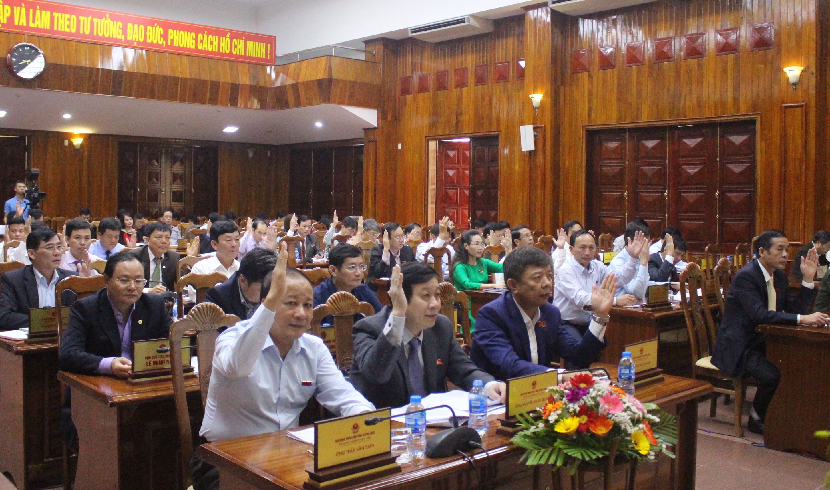 Ảnh: Các đại biểu biểu quyết thông qua dự thảo nghị quyết