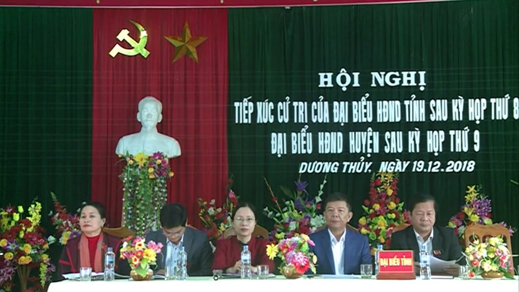 Sáng ngày 19-12, tổ đại biểu HĐND tỉnh gồm các ông: Nguyễn Hữu Hoài, nguyên Phó Bí thư Tỉnh ủy, nguyên Chủ tịch UBND tỉnh; Dương Văn Hùng, Phó Trưởng Ban kinh tế - ngân sách HĐND tỉnh đã có buổi tiếp xúc với cử tri huyện Lệ Thủy tại xã Dương Thủy, sau kỳ họp thứ 8, HĐND tỉnh khóa XVII. Cùng dự có đại diện Thường trực HĐND, UBND, UBMTTQ huyện Lệ Thủy; Thường trực HĐND, UBND, UBMTTQ, các ban, ngành đoàn thể và các bậc cử tri trên địa bàn các xã Dương Thủy, Tân Thủy, Thái Thủy và Mỹ Thủy.