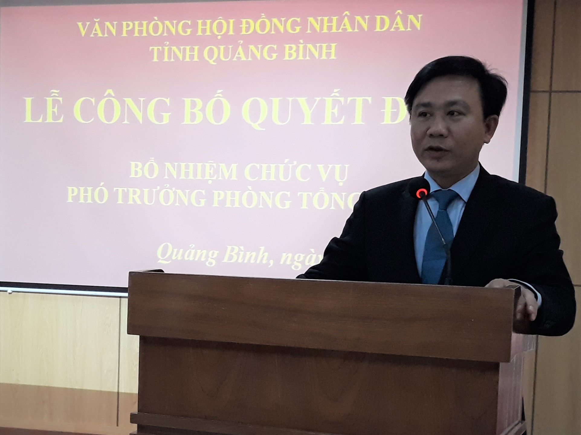 Tại buổi lễ, đồng chí Hoàng Xuân Tân - Ủy viên Thường trực HĐND, Chánh Văn phòng HĐND tỉnh đã trao quyết định bổ nhiệm các chức vụ Phó Trưởng phòng cho các đồng chí được bổ nhiệm. Phát biểu giao nhiệm vụ, đồng chí Chánh Văn phòng HĐND tỉnh ghi nhận sự cố gắng nổ lực phấn đấu của các đồng chí được bổ nhiệm, tín nhiệm giao phó vị trí lãnh đạo của phòng, đồng chí hy vọng ở vị trí mới, các đồng chí được bổ nhiệm sẽ cố gắng, nỗ lực, không ngừng nâng cao năng lực chuyên môn nghiệp vụ, giữ vững phẩm chất đạo đức chính trị, cùng với tập thể công chức Phòng Tổng hợp hoàn thành xuất sắc nhiệm vụ được giao, góp phần vào sự phát triển chung của HĐND tỉnh.