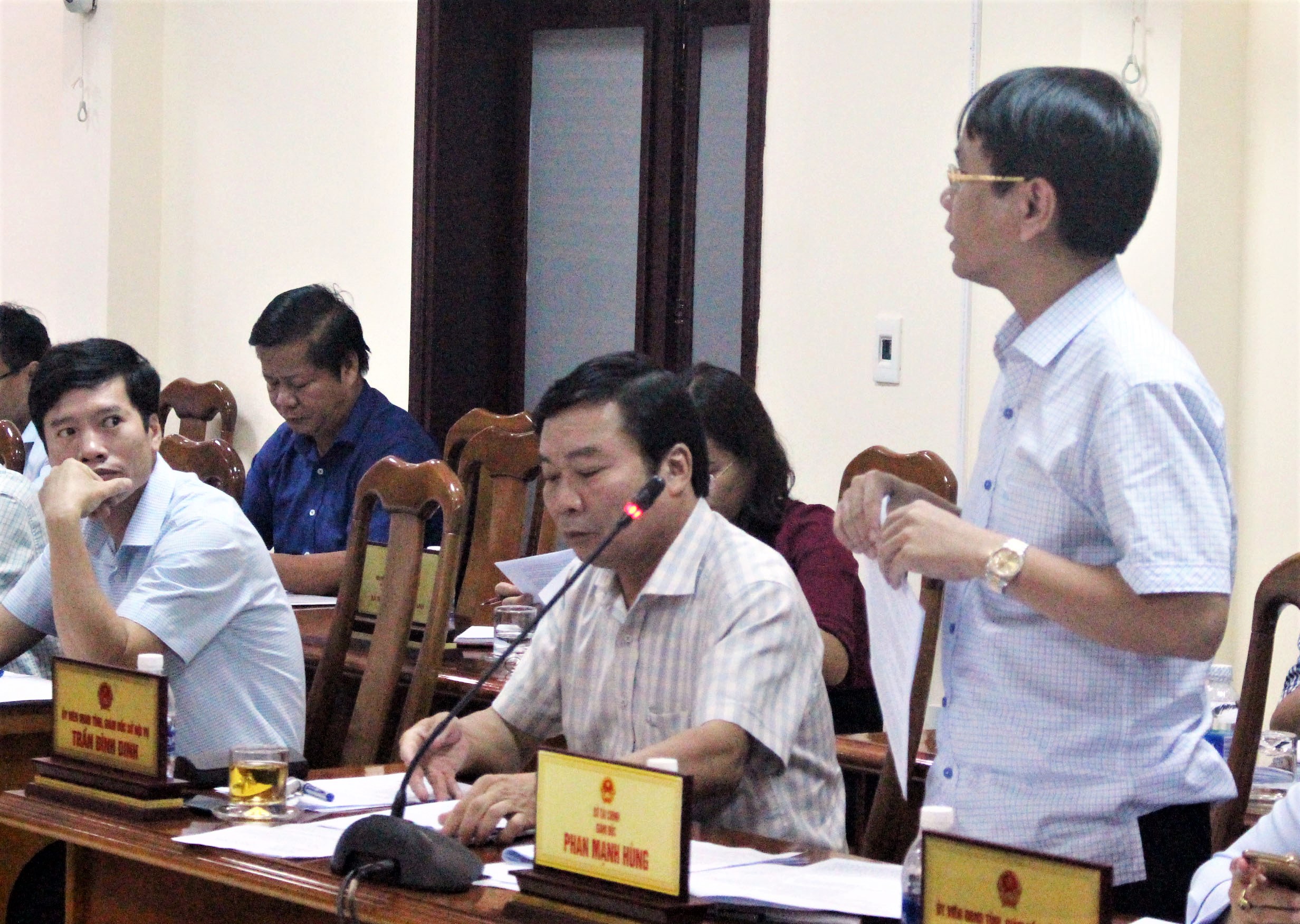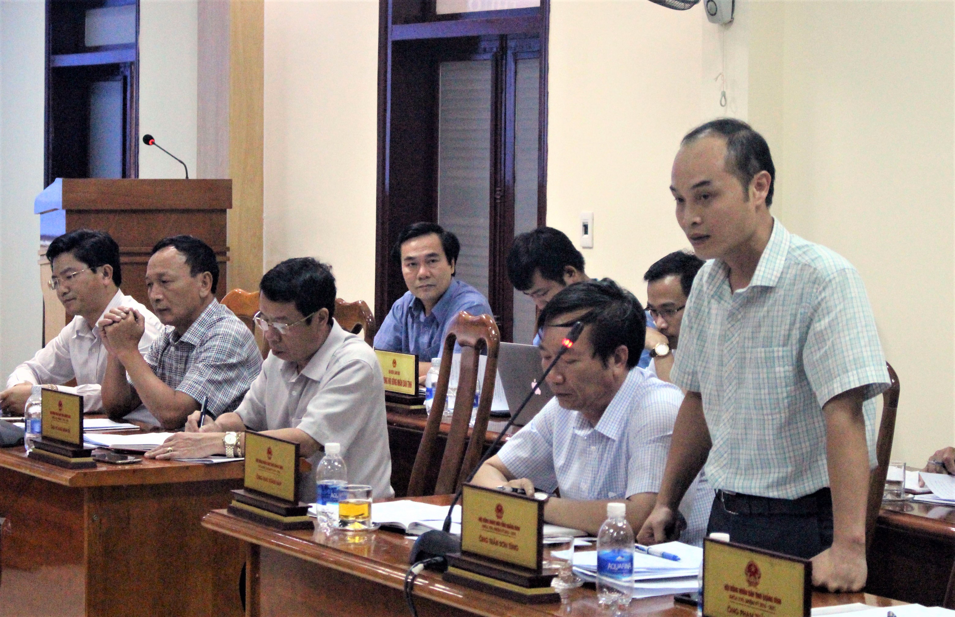 Ảnh: Đồng chí Trần Đình Dinh - Tỉnh ủy viên, Giám đốc Sở Nội vụ báo cáo công tác chuẩn bị các dự thảo Nghị quyết do Sở soạn thảo