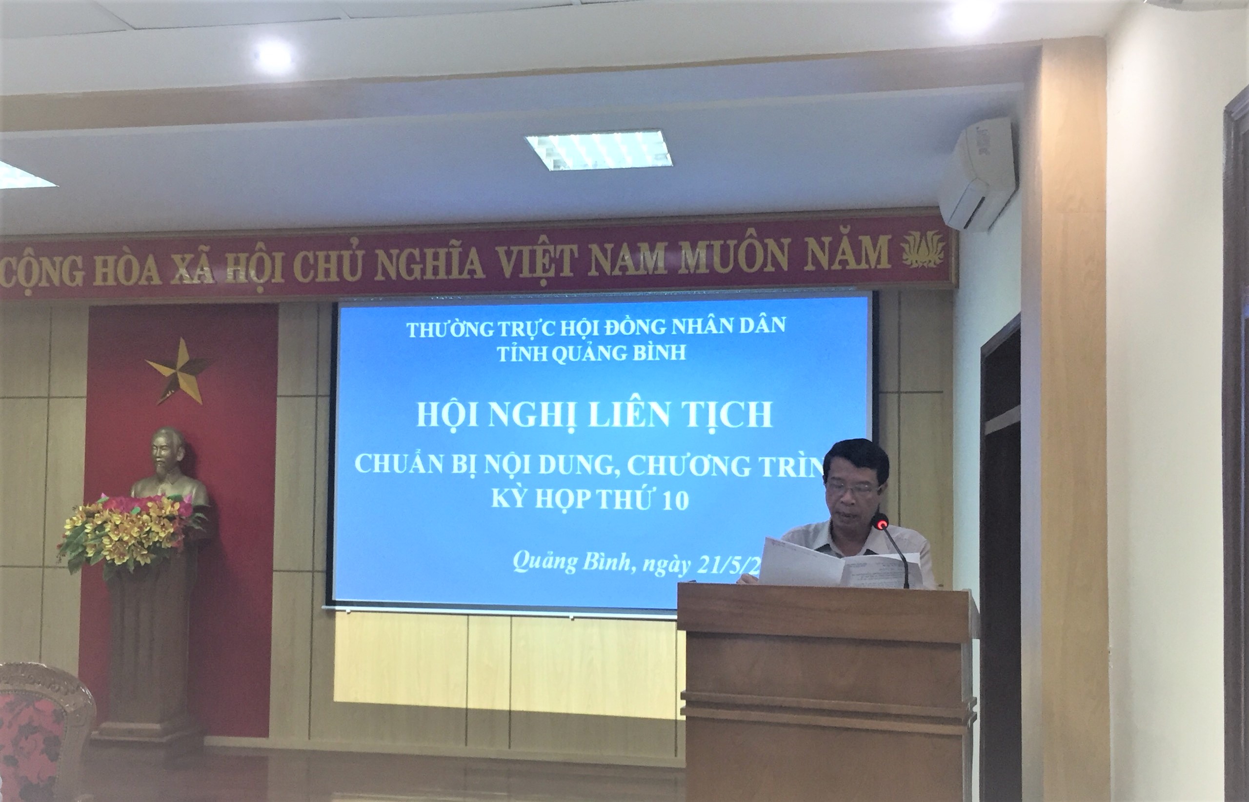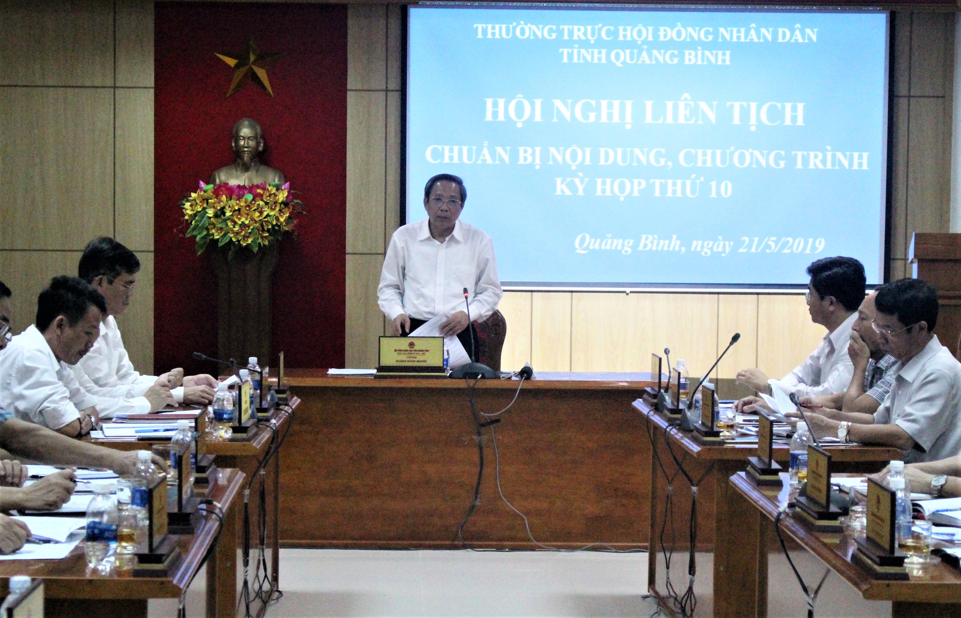 Phát biểu kết luận hội nghị, đồng chí Chủ tịch HĐND tỉnh yêu cầu: Kỳ họp cần được đổi mới về nội dung, hình thức. Với khối lượng công việc lớn, cần lựa chọn một số báo cáo trình tại kỳ họp, các báo cáo khác gửi đại biểu HĐND tỉnh xem xét, nghiên cứu và cho ý kiến. UBND tỉnh chỉ đạo các sở, ngành hoàn thành các nội dung liên quan đến kỳ họp, đảm bảo cho kỳ họp diễn ra được thuận lợi. Uỷ ban MTTQVN tỉnh, các Ban và Văn phòng HĐND tỉnh triển khai đúng tiến độ các nhiệm vụ được giao. Báo Quảng Bình, Đài Phát thanh – Truyền hình Quảng Bình phối hợp tuyên truyền trước, trong và sau kỳ họp, bảo đảm thành công cho kỳ họp./.