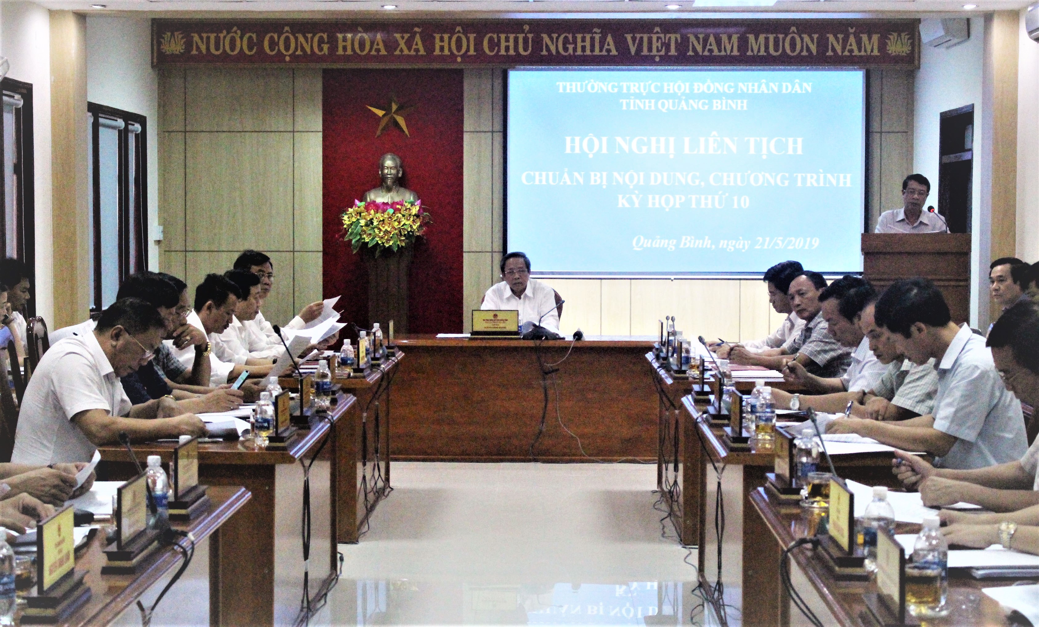Chiều ngày 21/5/2019, Thường trực HĐND tỉnh tổ chức hội nghị liên tịch để thông qua dự kiến nội dung, chương trình, kế hoạch tổ chức kỳ họp thứ 10, HĐND tỉnh khóa XVII. Đồng chí Hoàng Đăng Quang, UVTW Đảng, Bí thư Tỉnh ủy, Chủ tịch HĐND tỉnh chủ trì hội nghị. Cùng tham gia có các đồng chí trong Ban Thường vụ Tỉnh uỷ; Thường trực và các Ban của HĐND tỉnh; đại diện lãnh đạo UBND, Uỷ ban MTTQVN tỉnh, các sở, ban, ngành liên quan.
