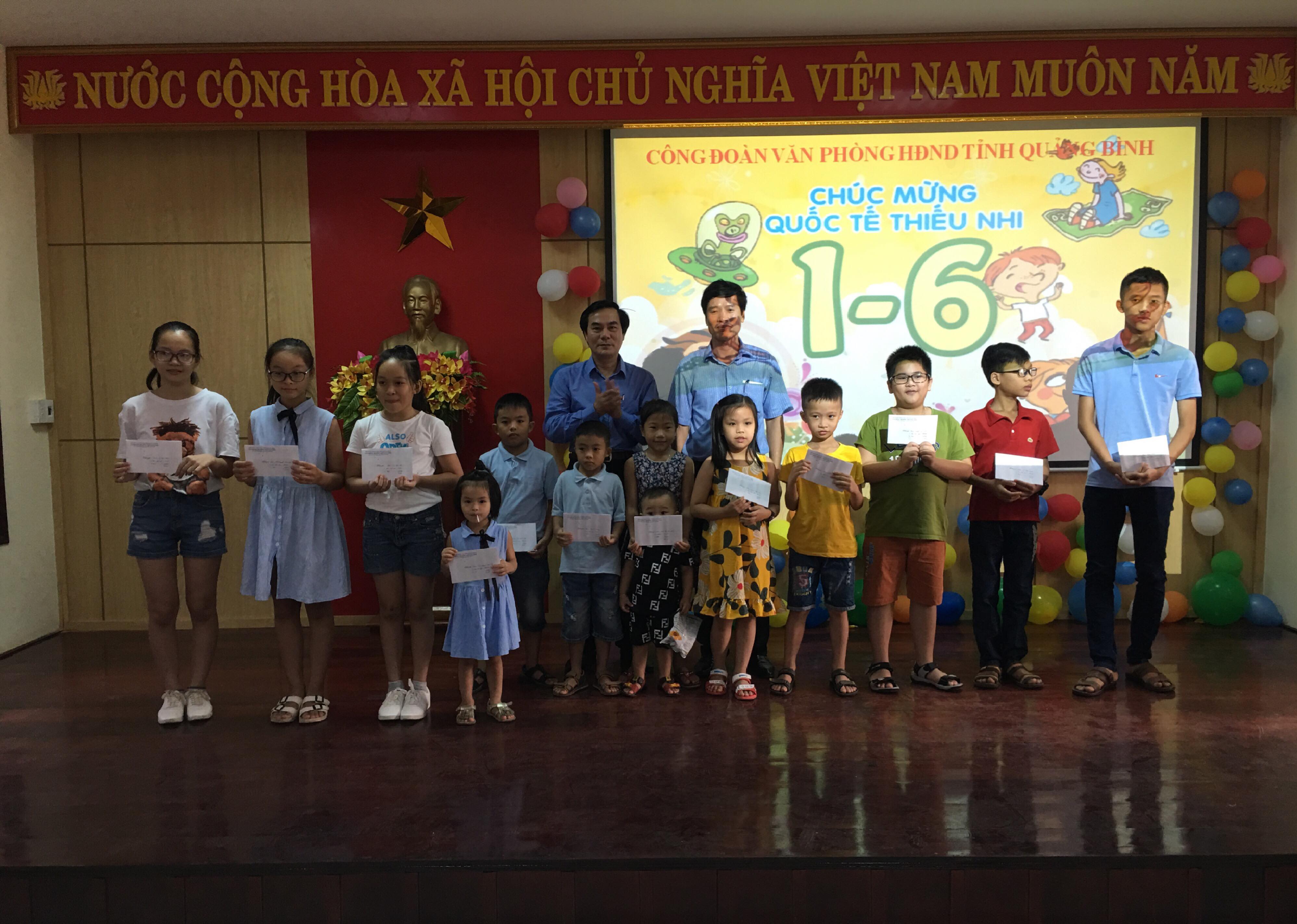 Trong những năm qua, Công đoàn và các tổ chức đoàn thể của Văn phòng HĐND tỉnh luôn dành sự quan tâm sâu sắc đến các cháu thiếu niên, nhi đồng, đặc biệt đối với các cháu là con cán bộ công chức, viên chức và người lao động trong cơ quan. Để kịp thời biểu dương và khích lệ tinh thần các cháu, Công đoàn Văn phòng HĐND tỉnh đã trao những suất quà khuyến học đối với các cháu có thành tích cao trong học tập và các phong trào thi đua, rèn luyện trong nhà trường và của tỉnh.