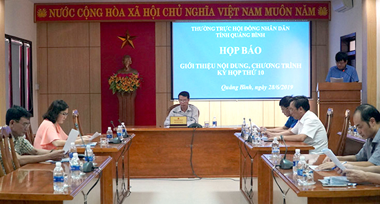 Chiều ngày 28/6/2019, Văn phòng HĐND tỉnh tổ chức họp báo tuyên truyền về nội dung, chương trình kỳ họp thứ 10, HĐND tỉnh khóa XVII, nhiệm kỳ 2016 - 2021. Đồng chí Hoàng Minh Đề, Tỉnh ủy viên, Ủy viên Thường trực, Chánh Văn phòng HĐND tỉnh chủ trì hội nghị với sự tham gia của đại diện lãnh đạo các sở, ban, ngành, các cơ quan thông tấn báo chí trên địa bàn.