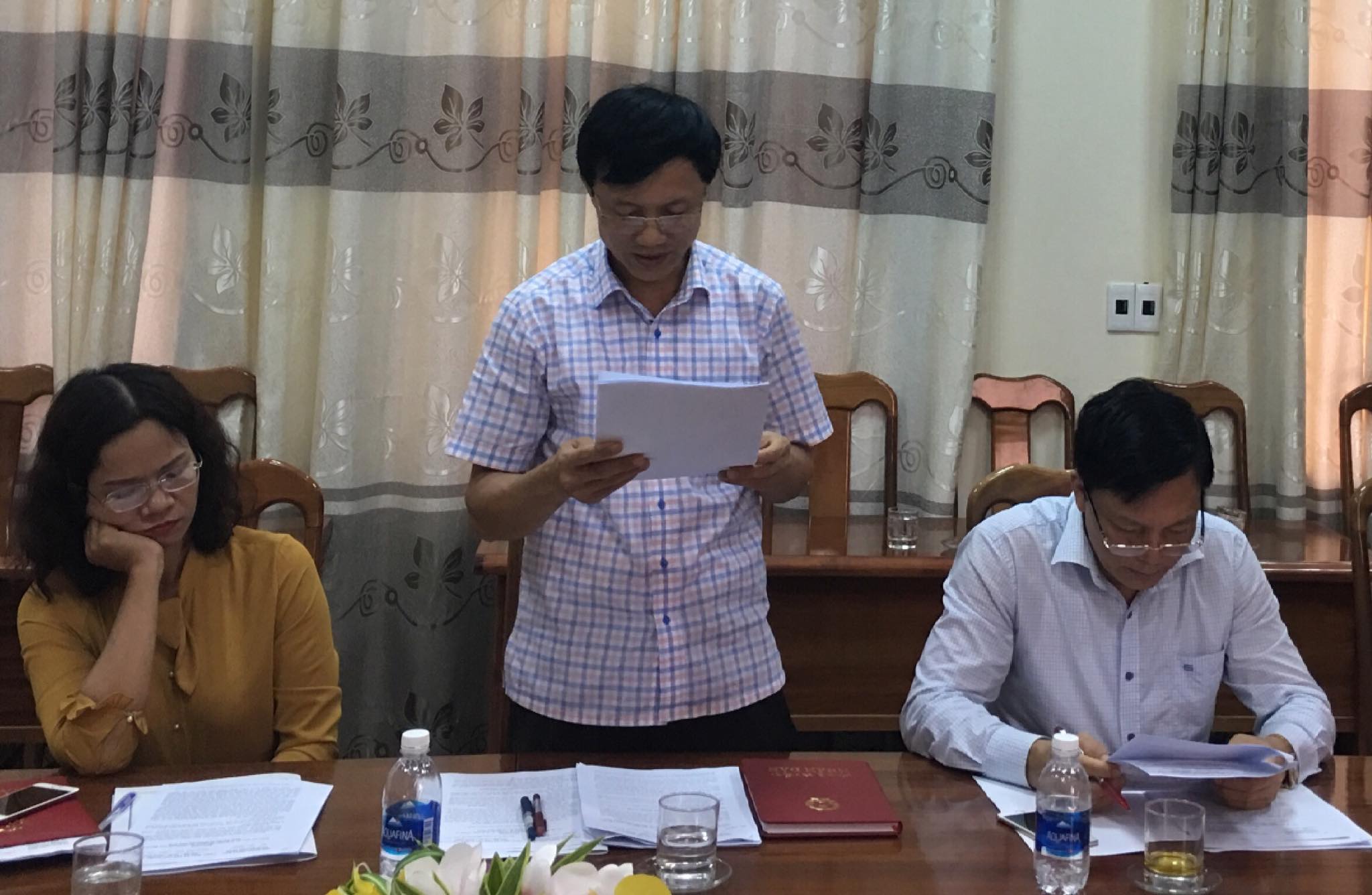 Đồng chí Phan Trần Nam, Phó Trưởng Ban VHXH trinh bày báo cáo thẩm tra tình hình thực hiện kinh tế- xã hội 6 tháng đầu năm 2019 trên lĩnh vực văn hóa - xã hội