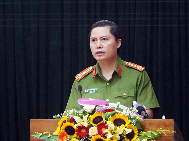 Ảnh: Đồng chí Phó Giám đốc Công an tỉnh trả lời chất vấn.