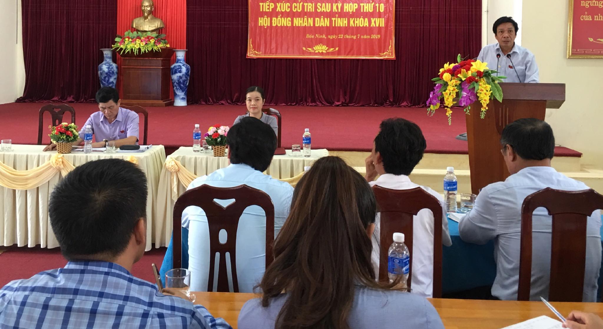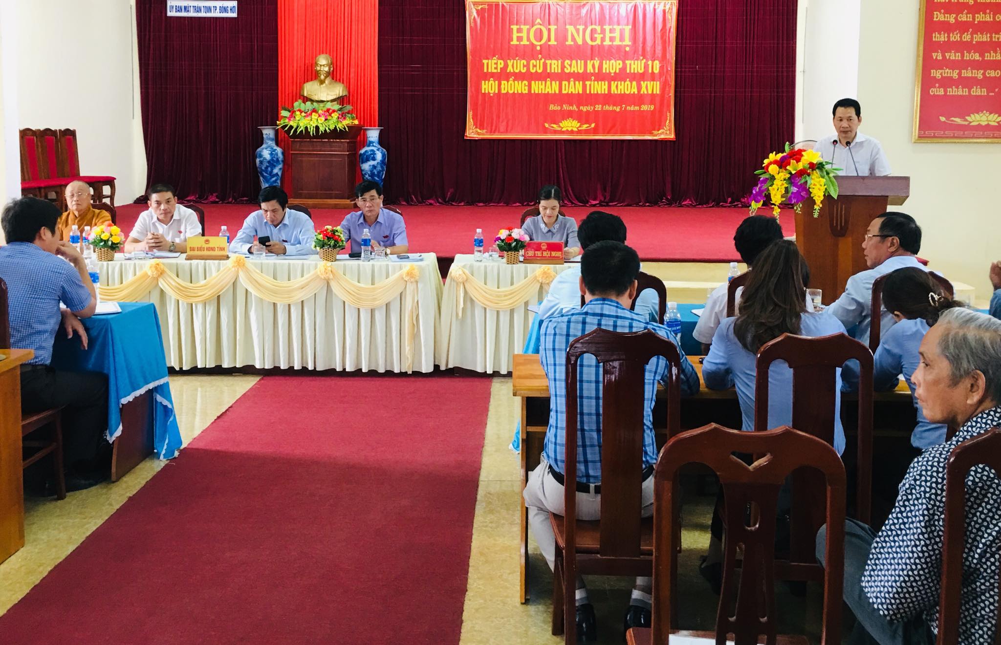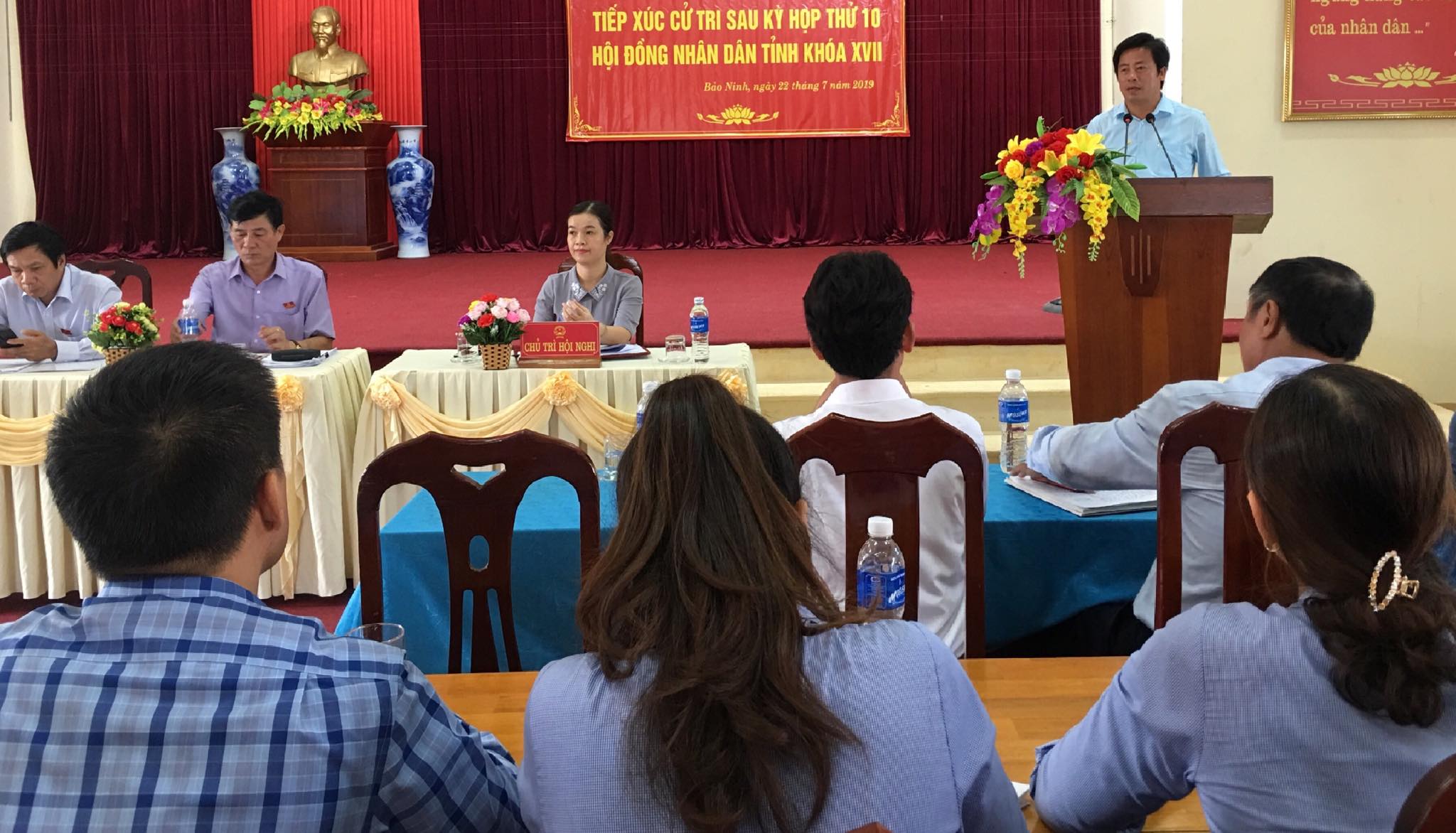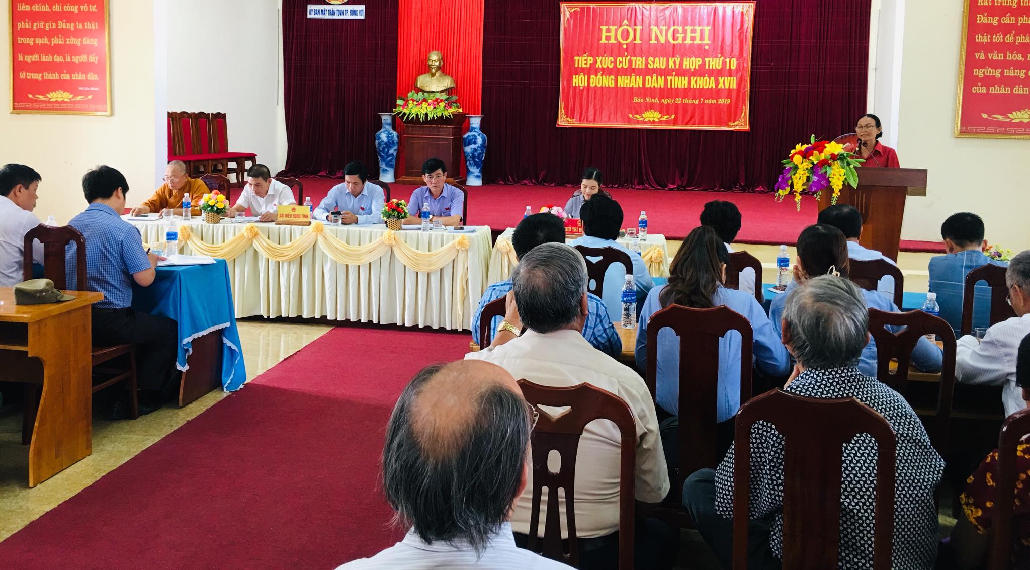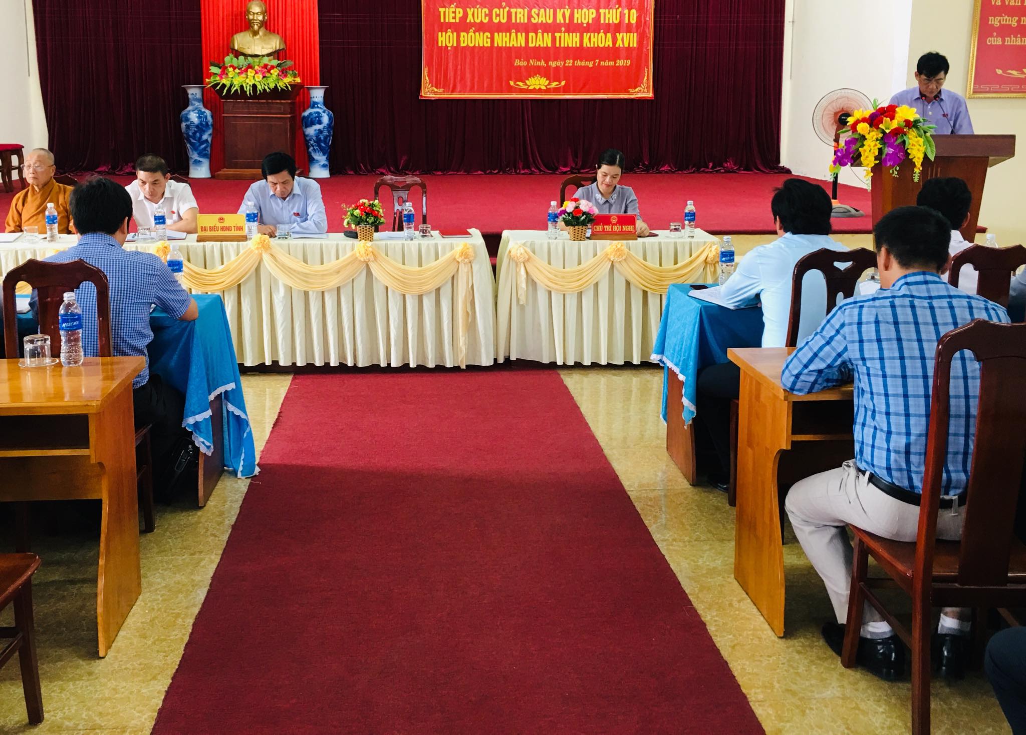 Chiều ngày 22/7/2019, tại Hội trường Trung tâm Nhà văn hóa xã Bảo Ninh, Tổ đại biểu HĐND tỉnh gồm: ông Nguyễn Công Huấn, UVTV Tỉnh uỷ, Trưởng Ban Dân vận Tỉnh uỷ, Trưởng Ban Văn hóa - Xã hội HĐND tỉnh; ông Hoàng Văn Tâm, Phó Bí thư Thường trực Thành uỷ Đồng Hới; ông Nguyễn Viết Hải, Tổng Giám đốc Công ty TNHH Tập đoàn Sơn Hải, ông Nguyễn Văn Thảo (Hòa thượng Thích Tánh Nhiếp) chủ trì chùa Đại Giác tiến hành tiếp xúc cử tri sau kỳ họp thứ 10. Cùng dự có đại diện Thường trực HĐND, UBND, UBMTTQ thành phố, Thường trực HĐND, UBND, UBMTTQ, các ban, ngành đoàn thể và các bậc cử tri trên địa bàn xã Bảo Ninh.