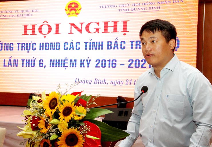 Đồng chí Nguyễn Lương Bình, Phó Chủ tịch HĐND tỉnh Quảng Bình phát biểu tại Hội nghị