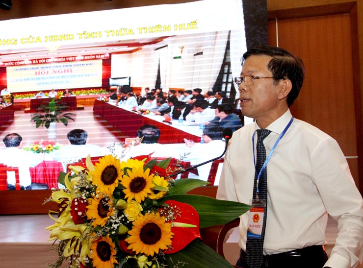 Đồng chí Cái Vĩnh Tuấn, Phó Chủ tịch Thường trực HĐND tỉnh Thừa Thiên Huế phát biểu tại Hội nghị