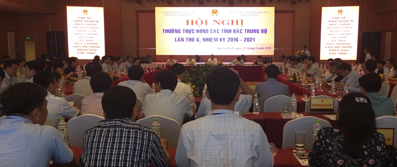 Sáng ngày 24/8/2019, tại thành phố Đồng Hới, Ủy ban Thường vụ Quốc hội phối hợp với Thường trực HĐND tỉnh Quảng Bình tổ chức hội nghị Thường trực HĐND các tỉnh Bắc Trung Bộ lần thứ 6 với chủ đề “Kinh nghiệm hoạt động và giải pháp nâng cao chất lượng tổ chức kỳ họp bất thường của HĐND cấp tỉnh”.