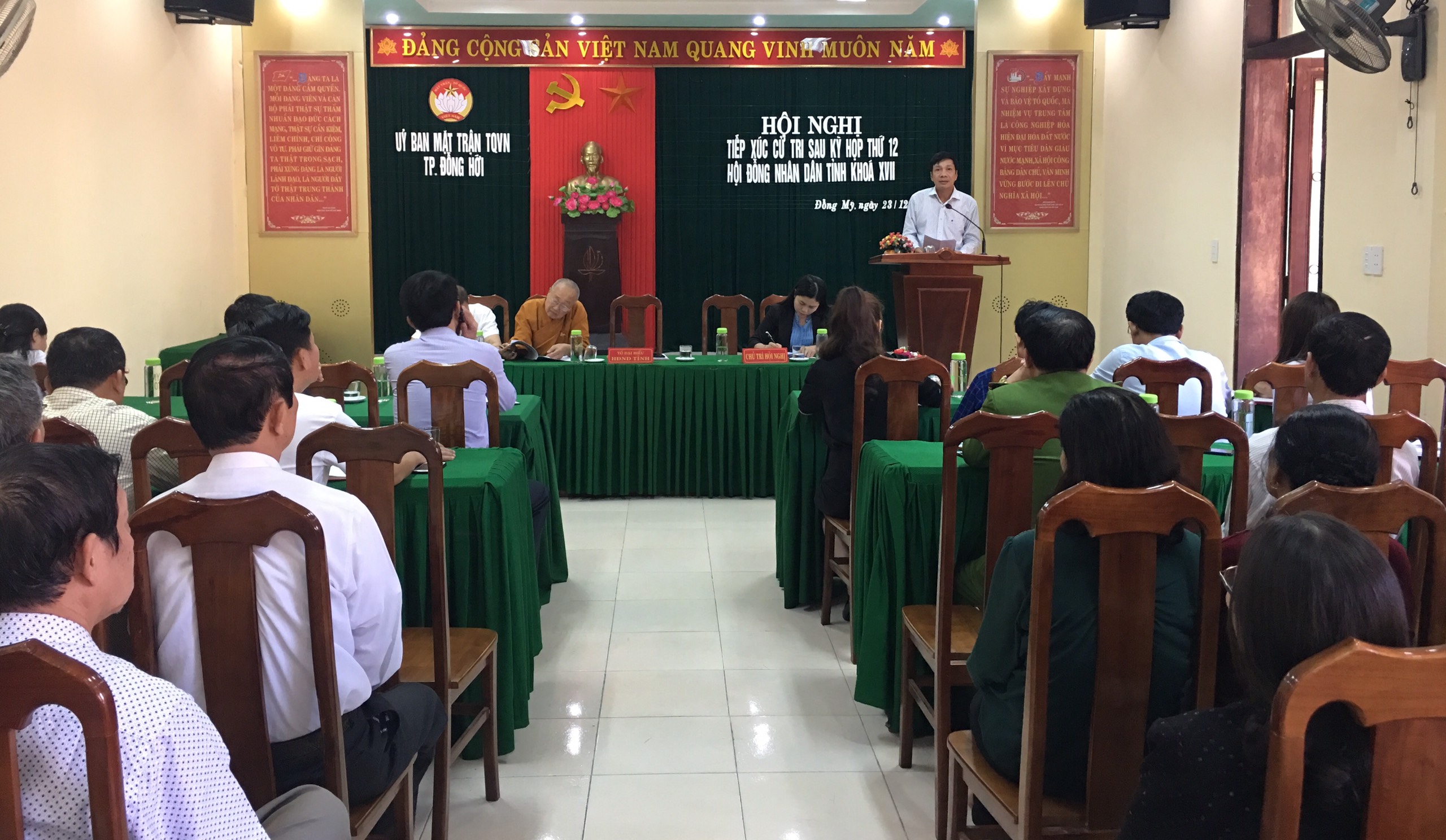 Chiều ngày 23/12/2019, Tổ đại biểu HĐND tỉnh gồm các đại biểu: ông Nguyễn Công Huấn, UVTV Tỉnh uỷ, Trưởng Ban Dân vận Tỉnh uỷ, Trưởng Ban Văn hóa - Xã hội HĐND tỉnh; ông Nguyễn Viết Hải, Tổng Giám đốc Công ty TNHH Tập đoàn Sơn Hải; ông Nguyễn Văn Thảo (Hòa thượng Thích Tánh Nhiếp), Chủ trì chùa Đại Giác có buổi tiếp xúc cử tri tại phường Đồng Mỹ, thành phố Đồng Hới.