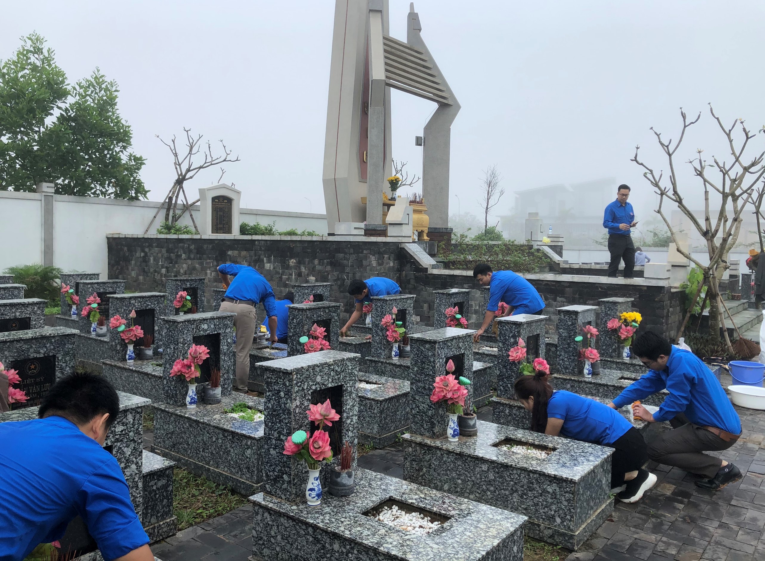 Ảnh: Các đoàn viên Liên Chi đoàn tại Nghĩa trang liệt sĩ phường Phú Hải