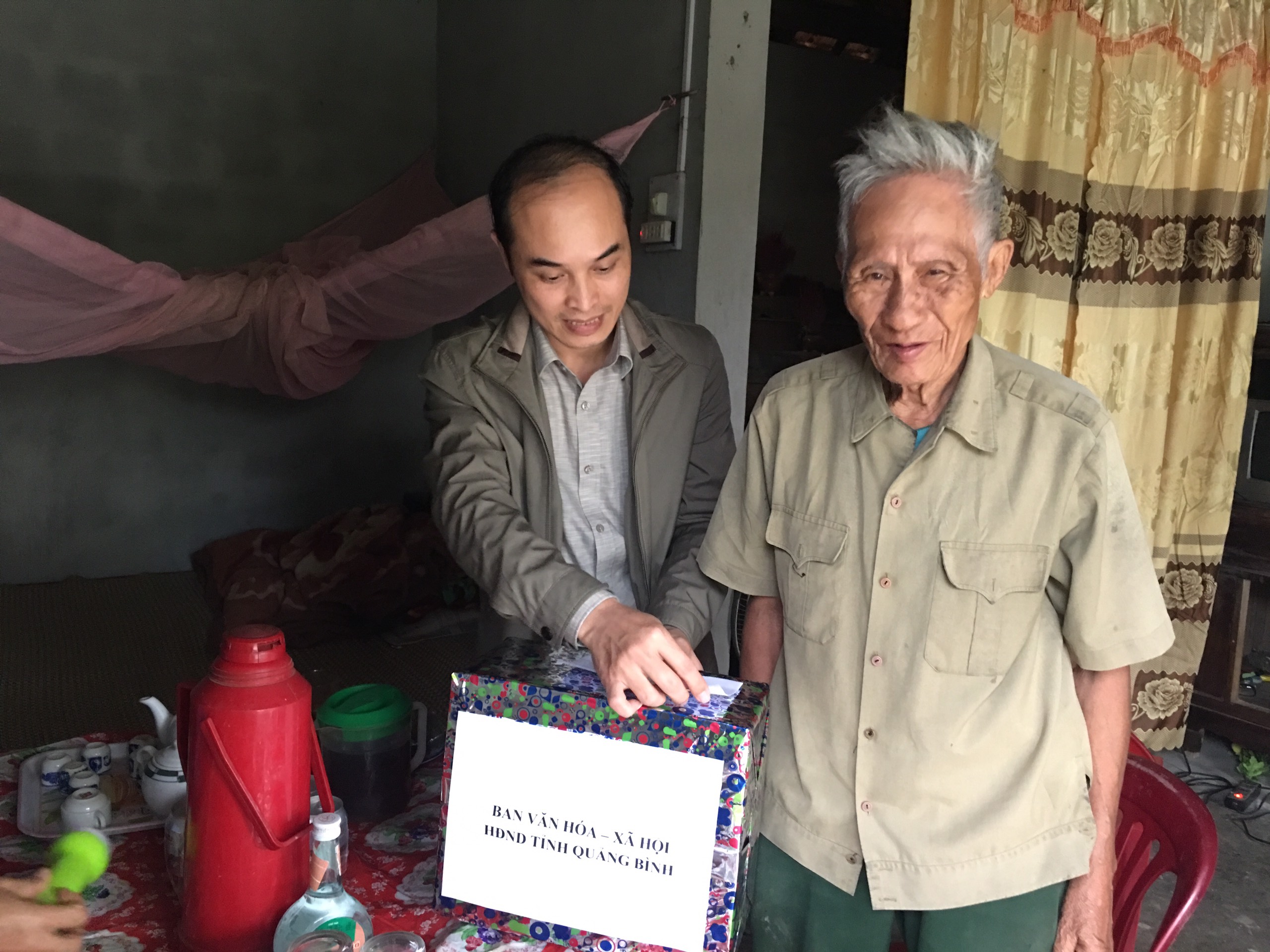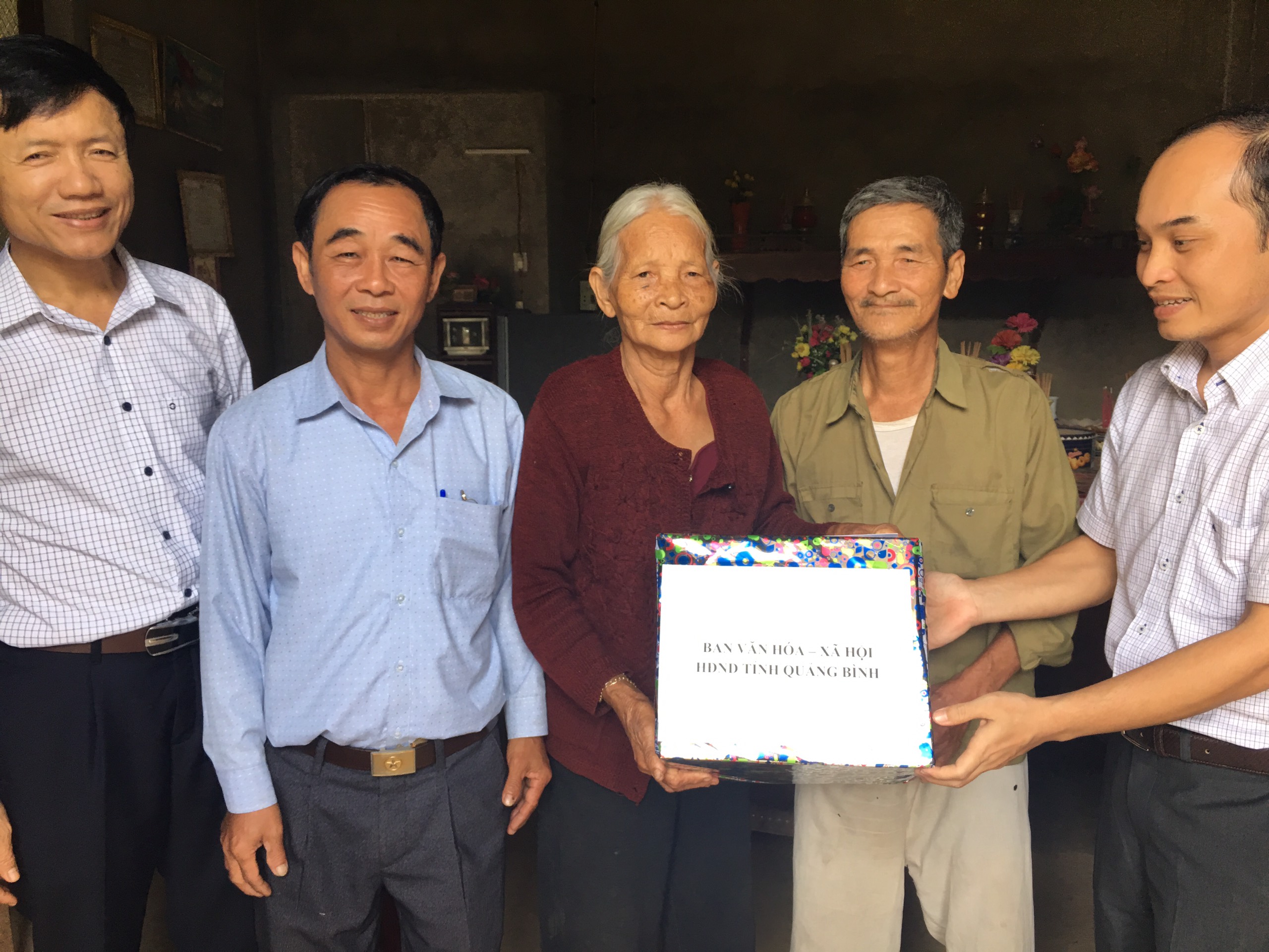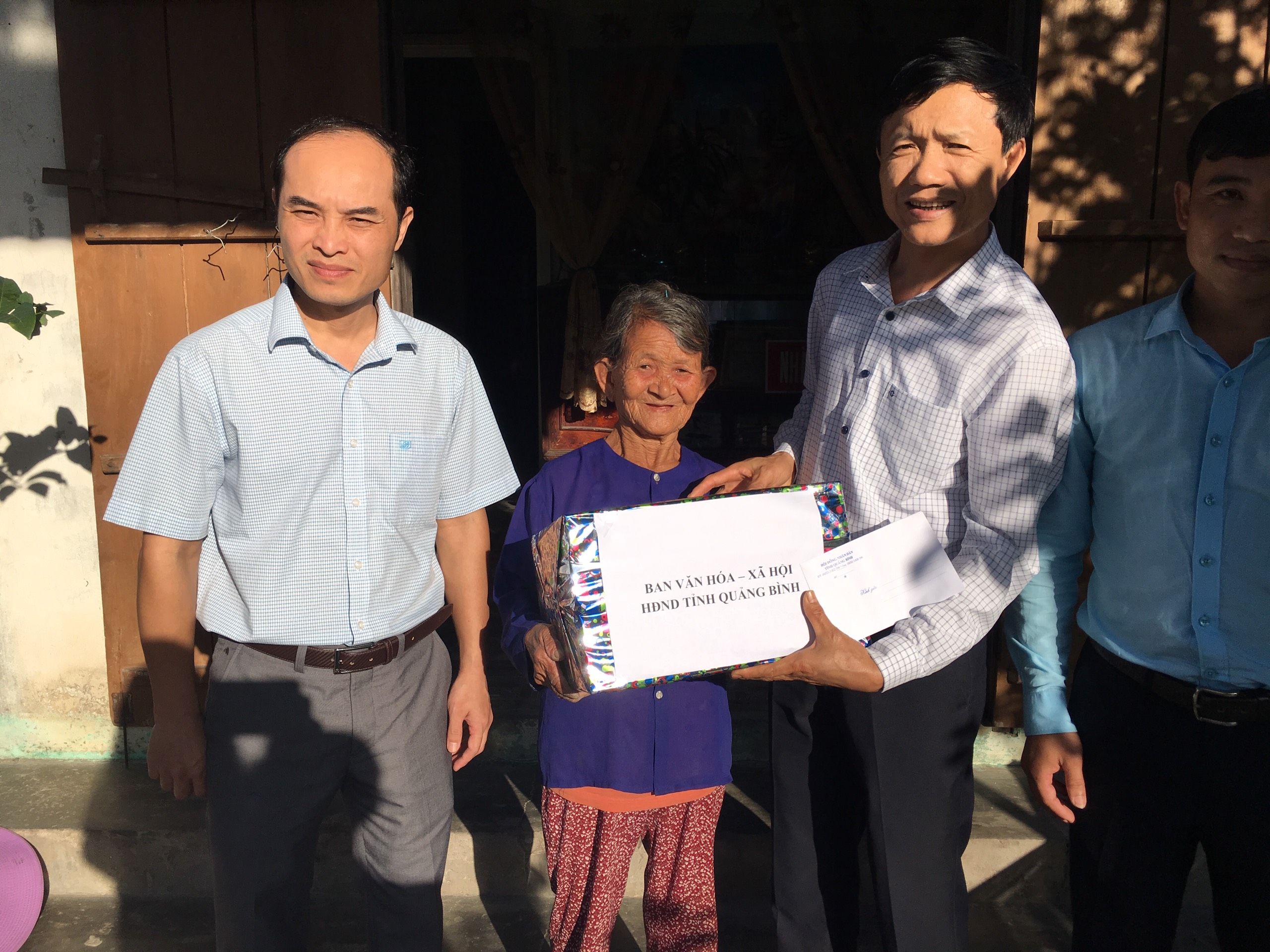 Đồng chí Trần Sơn Tùng ,Phó Trưởng Ban VH-XH tặng quà cho các hộ gia đình có công với cách mạng tại thị trấn Phong Nha (huyện Bố Trạch)