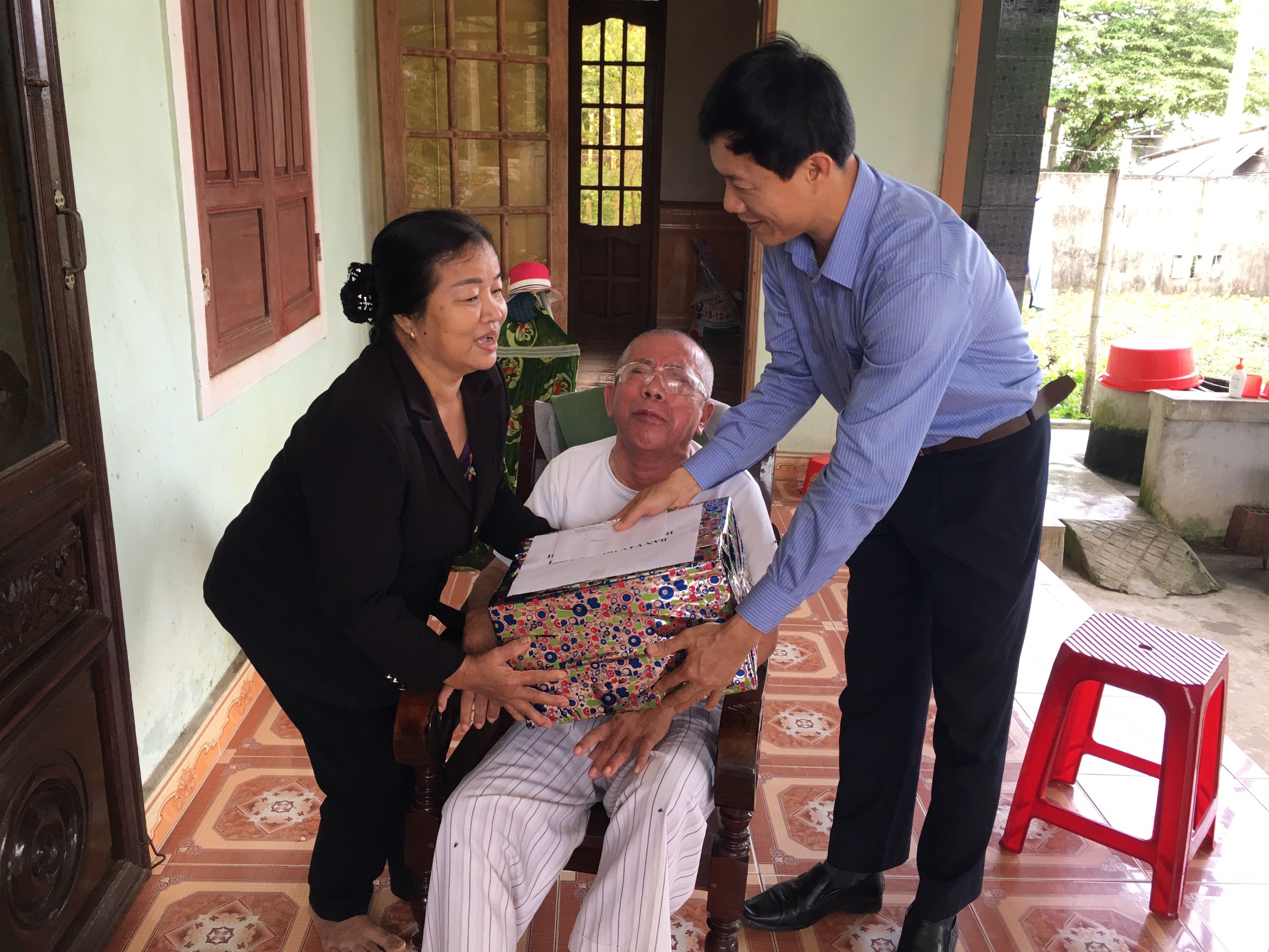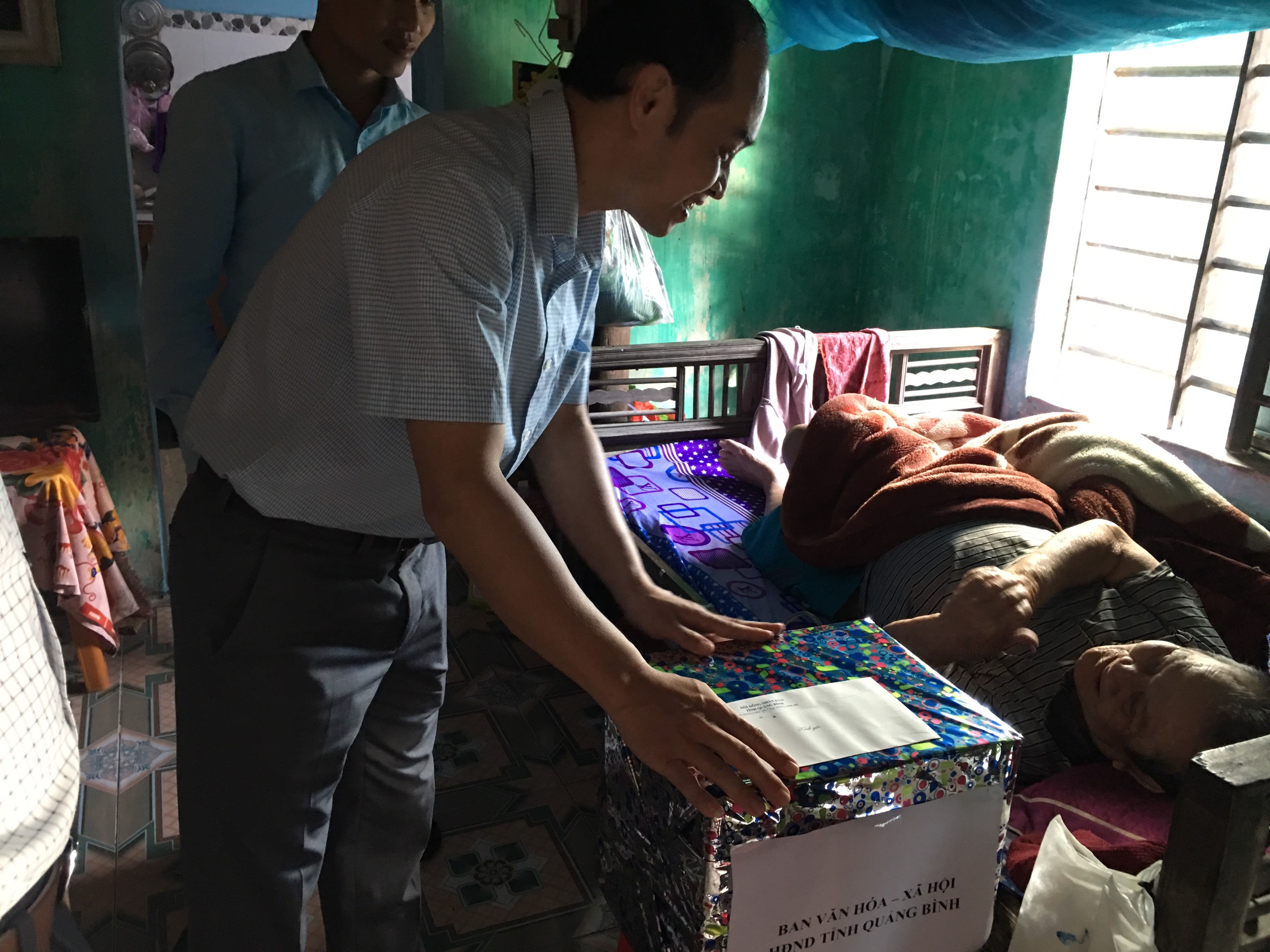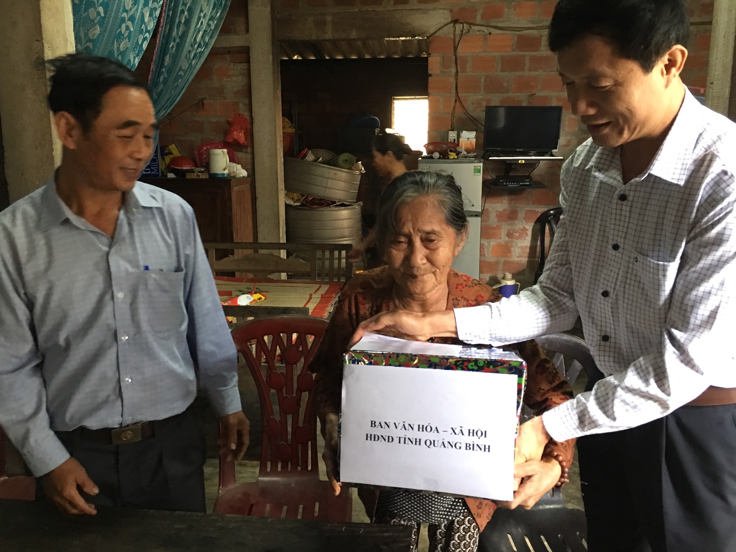 Đồng chí Trần Sơn Tùng ,Phó Trưởng Ban VH-XH tặng quà cho các hộ gia đình có công với cách mạng tại thị trấn Phong Nha (huyện Bố Trạch)