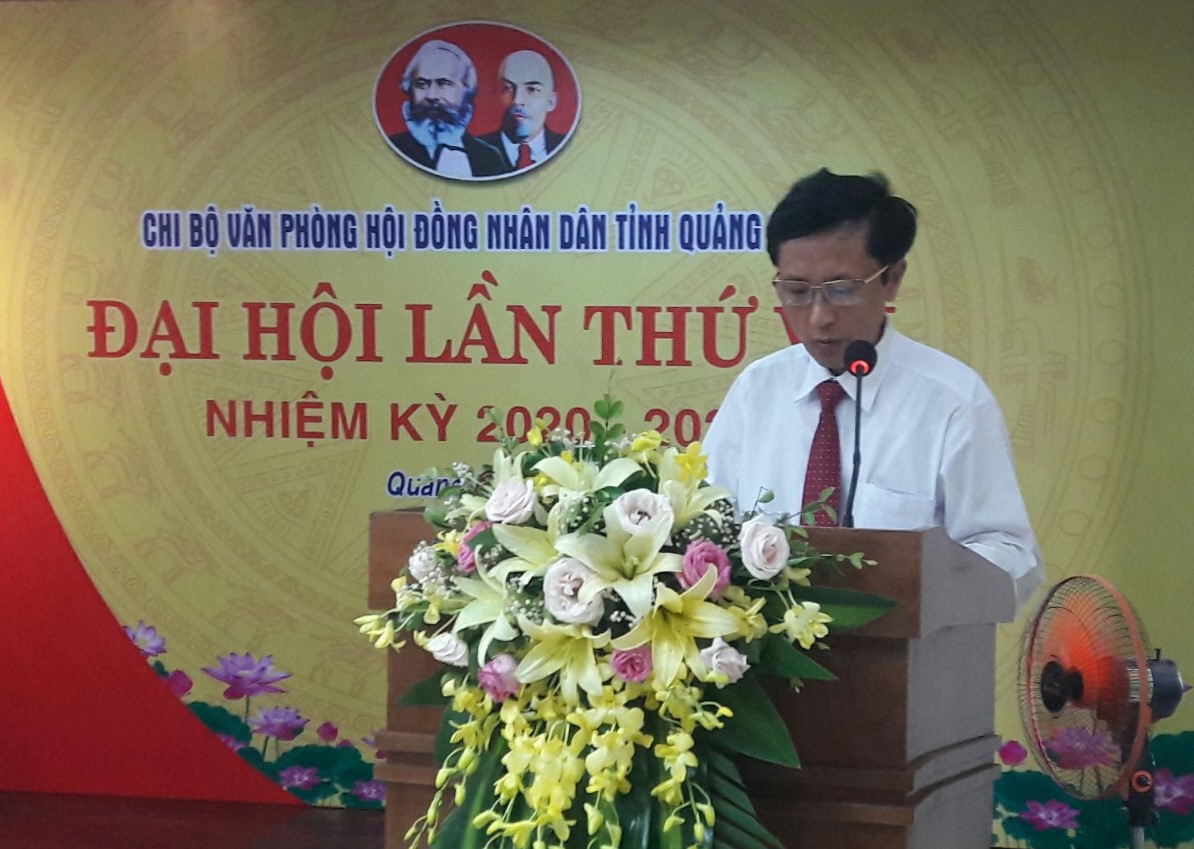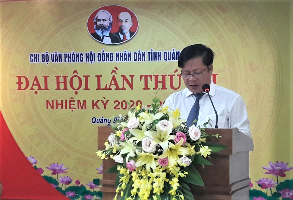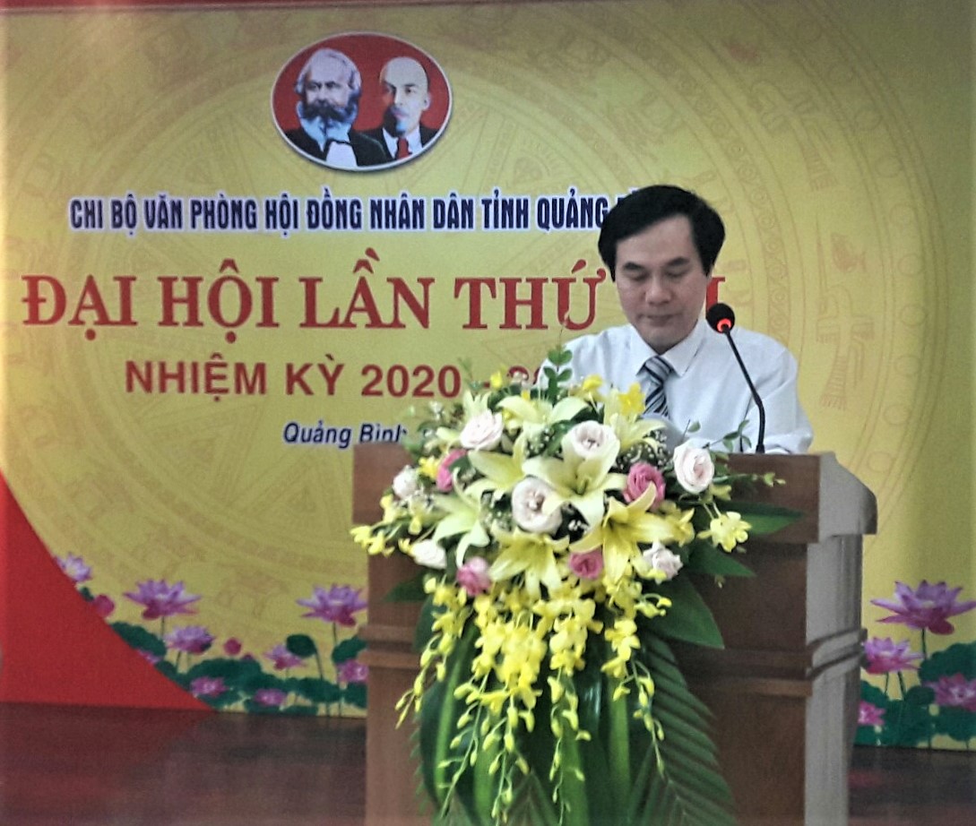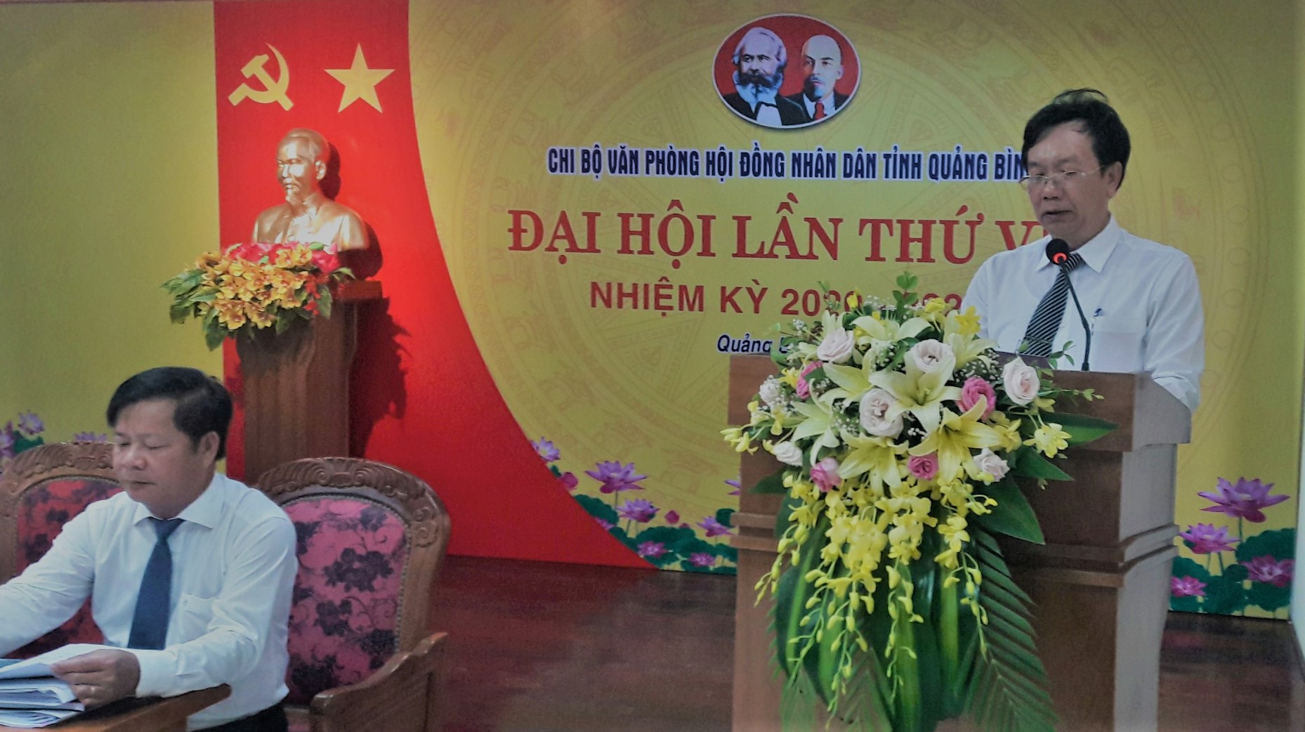 Ảnh: Đ/c Mai Xuân Hạp, Bí thư Chi bộ Văn phòng HĐND tỉnh nhiệm kỳ 2015-2020 phát biểu khai mạc Đại hội