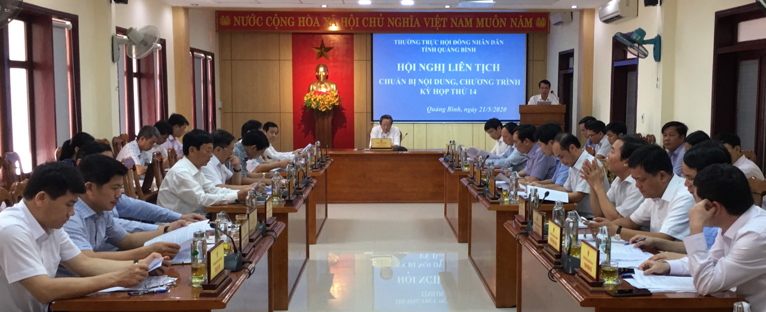 Tại Hội nghị, đồng chí Hoàng Minh Đề, Chánh Văn phòng HĐND tỉnh đã trình bày dự kiến nội dung, chương trình Kỳ họp thường lệ giữa năm 2020, HĐND tỉnh khóa XVII; theo đó, dự kiến kỳ họp sẽ được tổ chức trong 03 ngày, từ ngày 07/7 đến ngày 09/7/2020 tại Hội trường UBND tỉnh; thời gian tiếp xúc cử tri từ ngày 02/6 đến 05/6/2020; thời gian họp báo để định hướng nội dung tuyên truyền trước, trong và sau kỳ họp vào ngày 23/6/2020.