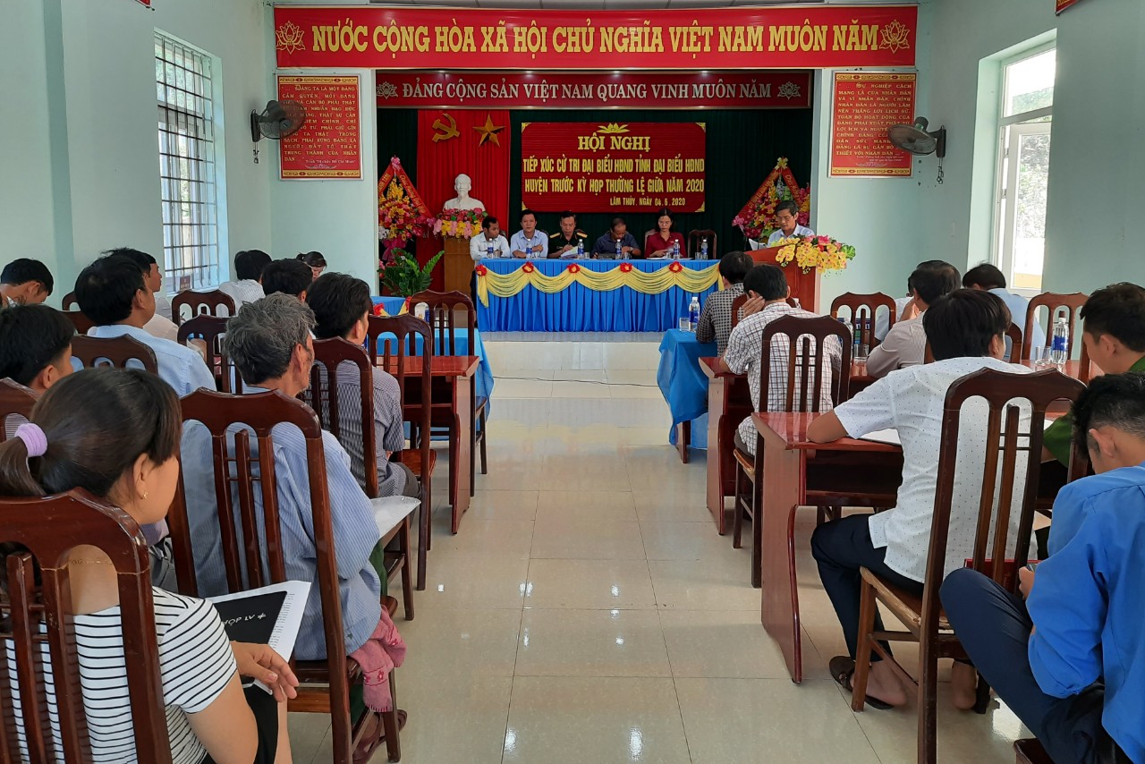 Tại buổi tiếp xúc, đại diện Tổ đại biểu HĐND tỉnh đã báo cáo với cử tri huyện Lệ Thủy tình hình thực hiện nghị quyết của HĐND tỉnh 5 tháng đầu năm 2020 và dự kiến nội dung, chương trình kỳ họp thường lệ giữa năm 2020 của HĐND tỉnh khóa XVII.