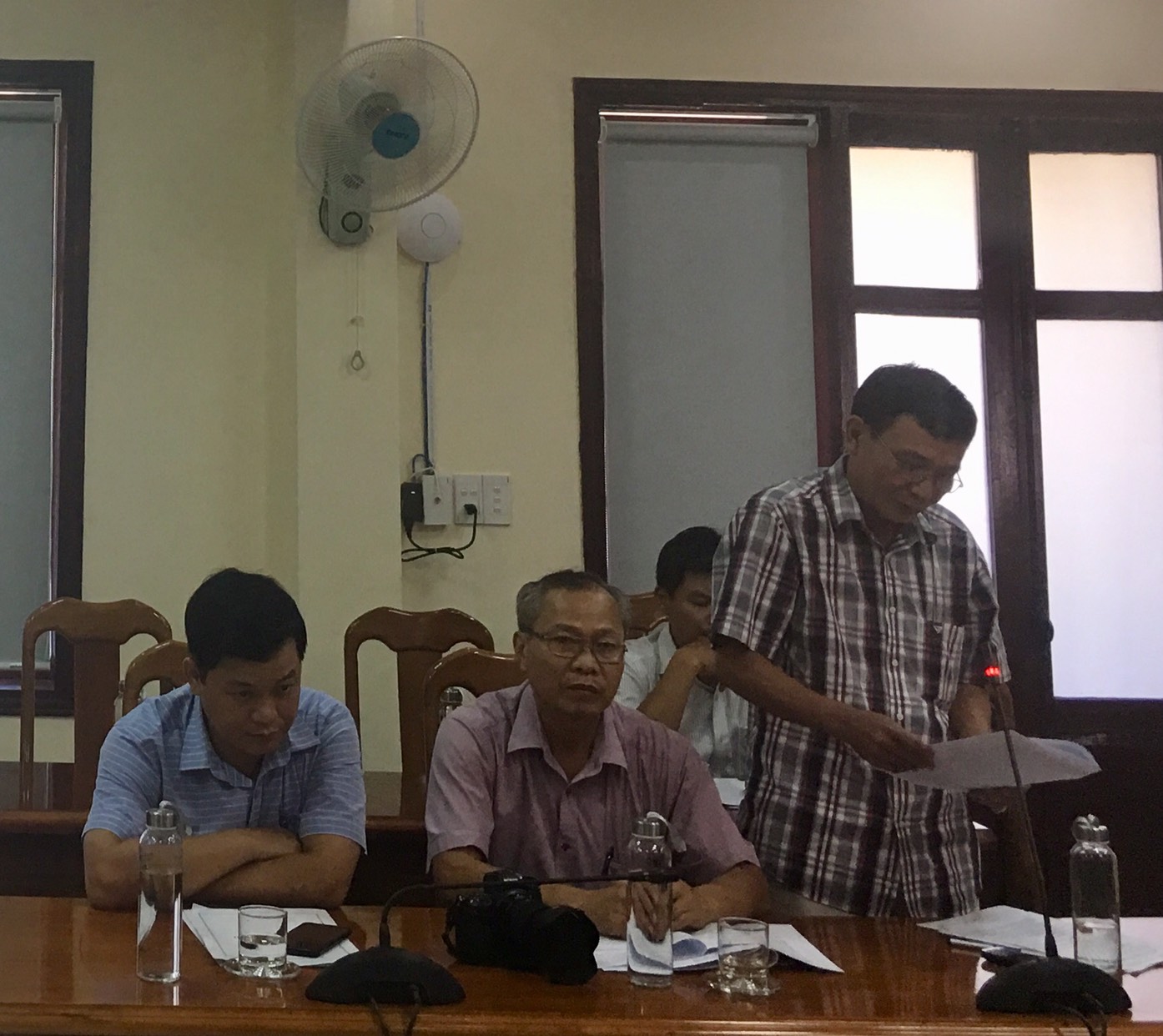 Nhà báo Đoàn Xuân Thắng, Phó Giám đốc Đài PT-TH tỉnh tham gia ý kiến vào nội dung họp báo