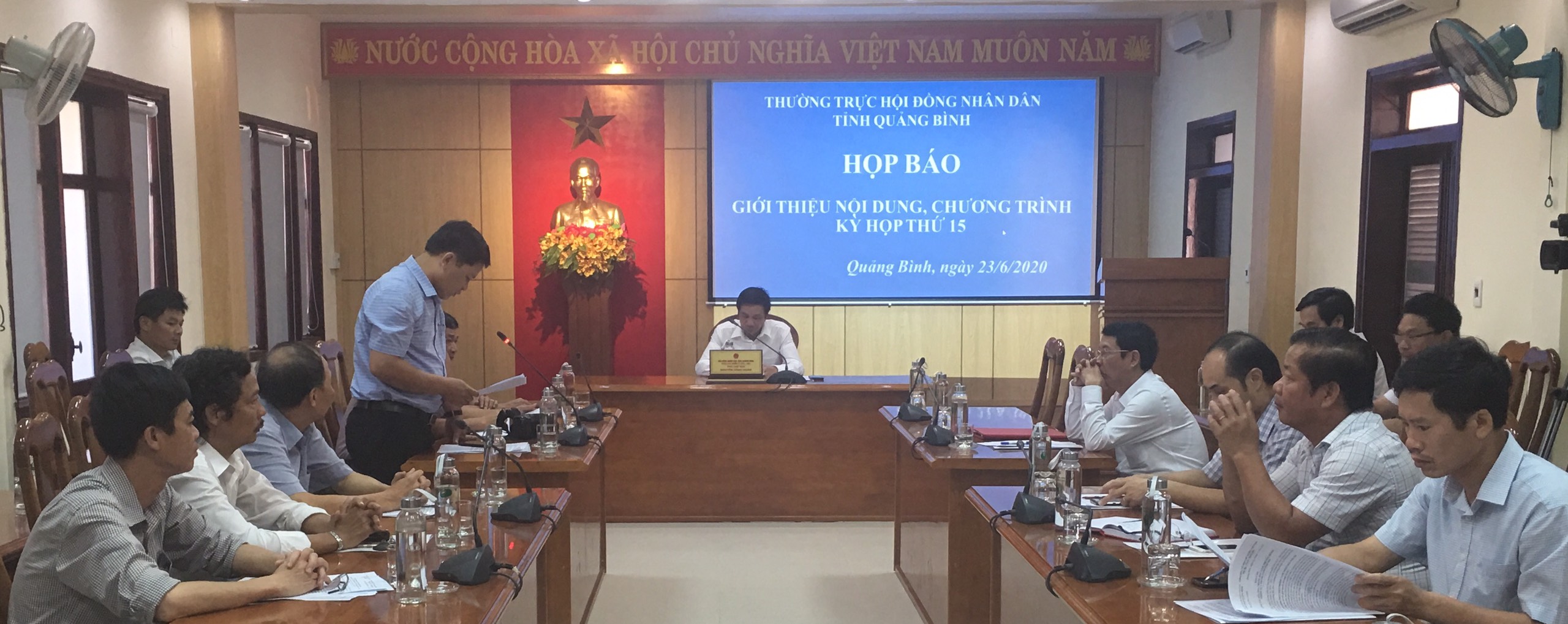 Chiều ngày 23/6/2020, Thường trực HĐND tỉnh tổ chức họp báo tuyên truyền về nội dung, chương trình Kỳ họp thứ 15, HĐND tỉnh khóa XVII, nhiệm kỳ 2016-2021. Đồng chí Nguyễn Công Huấn, Ủy viên BTV Tỉnh ủy, Phó Chủ tịch Thường trực HĐND tỉnh chủ trì. Dự họp báo có đại diện lãnh đạo các sở, ban, ngành liên quan, các cơ quan báo chí trong tỉnh và đại diện cơ quan báo chí Trung ương thường trú trên địa bàn tỉnh.