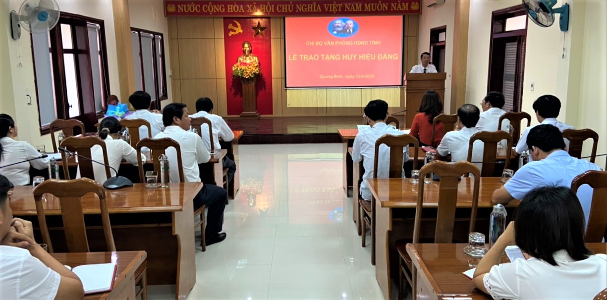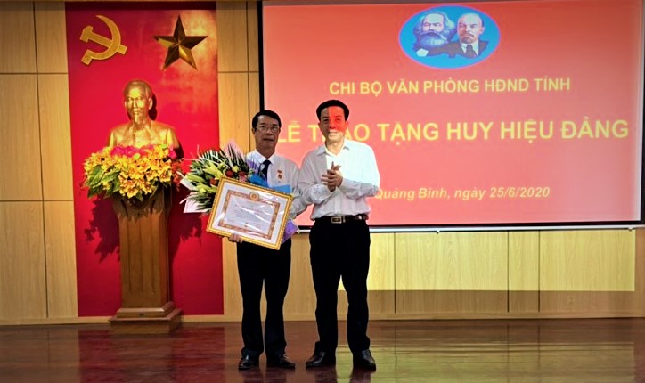 Chiều ngày 25/6/2020, Chi bộ cơ quan Văn phòng HĐND tỉnh đã tổ chức lễ trao tặng huy hiệu 30 năm tuổi Đảng cho đồng chí Hoàng Minh Đề - Tỉnh ủy viên, Ủy viên thường trực, Chánh Văn phòng HĐND tỉnh. Dự buổi lễ có đồng chí Nguyễn Công Huấn - Ủy viên Ban thường vụ Tỉnh ủy, Phó Chủ tịch Thường trực HĐND tỉnh; đồng chí Nguyễn Lương Bình - Tỉnh ủy viên, Phó Chủ tịch HĐND tỉnh; đồng chí Nguyễn Kim Long - Phó Bí thư Đảng ủy Khối các cơ quan tỉnh; các đồng chí trong Ban chấp hành Chi bộ cùng toàn thể đảng viên của Chi bộ Văn phòng HĐND tỉnh.