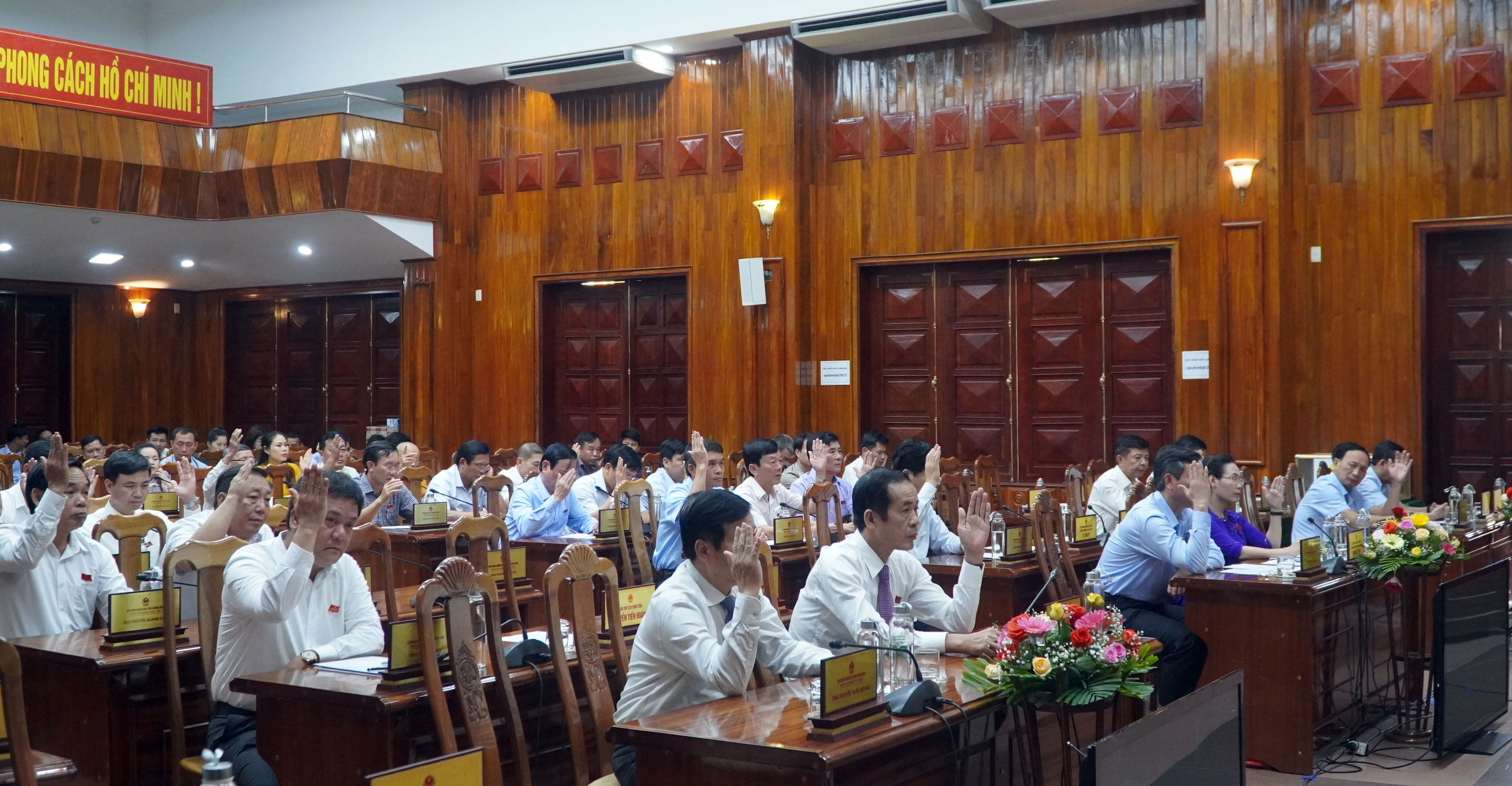 Các đại biểu biểu quyết thông qua nghị quyết miễn nhiệm Ủy viên UBND tỉnh