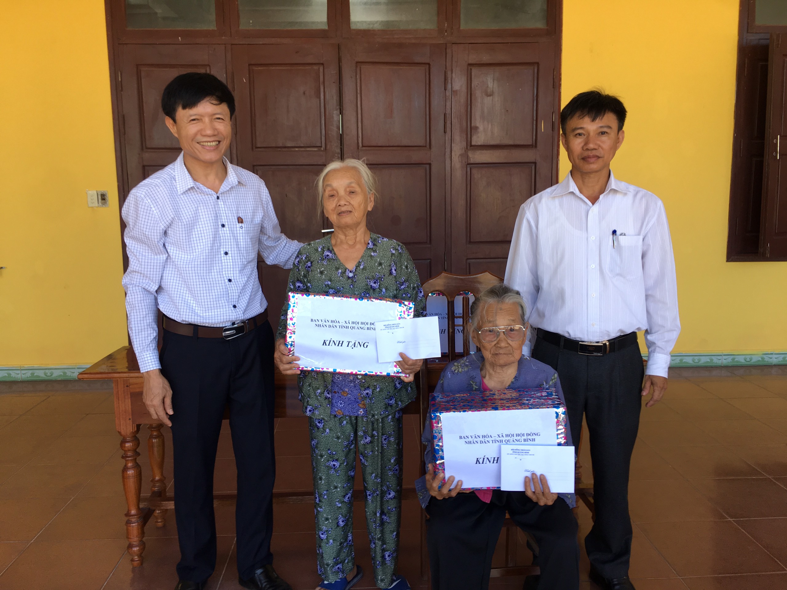 Lãnh đạo Ban VH-XH tặng quà cho các hộ gia đình có công với cách mạng trên địa bàn xã Võ Ninh