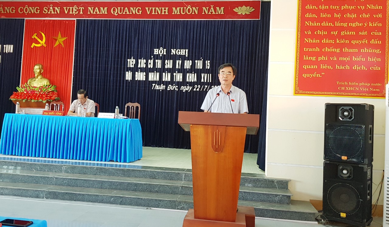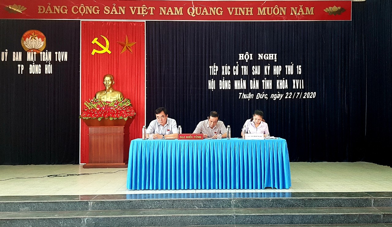 Sáng ngày 22 - 7, Tổ đại biểu HĐND tỉnh gồm: Ông Trần Công Thuật - Phó Bí thư Tỉnh ủy, Chủ tịch UBND tỉnh, Trưởng Đoàn ĐBQH tỉnh; ông Nguyễn Lương Bình - Tỉnh ủy viên, Phó Chủ tịch HĐND tỉnh đã có buổi tiếp xúc với cử tri thành phố Đồng Hới sau Kỳ họp thứ 15 - HĐND tỉnh khóa XVII tại trụ sở UBND xã Thuận Đức.