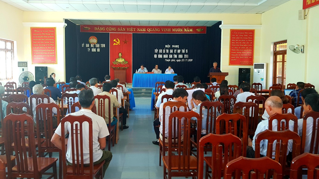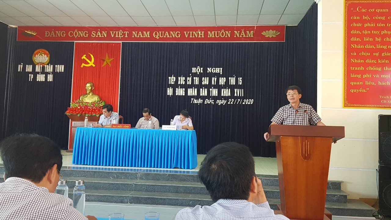 Sau khi nghe báo cáo của Tổ đại biểu HĐND tỉnh, cử tri thành phố Đồng Hới bày tỏ phấn khởi trước kết quả Kỳ họp thứ 15 mà HĐND tỉnh vừa đạt được. Đồng thời, nêu quan điểm và có những ý kiến, kiến nghị với HĐND tỉnh về các vấn đề như: đề nghị nâng phụ cấp cho một số chức danh làm việc ở các thôn; giải quyết chế độ, chính sách cho người có công; tạo thuận lợi trong việc làm các thủ tục cấp Giấy CNQSD đất; xử lý việc gây ô nhiễm môi trường tại các lò ngói, lò gạch trên địa bàn xã Thuận Đức; đề nghị nâng cấp, cải tạo đường Trùng Trương.