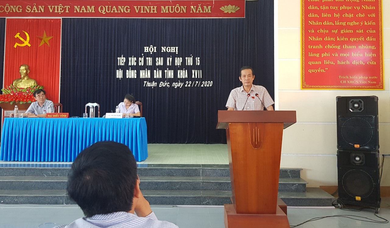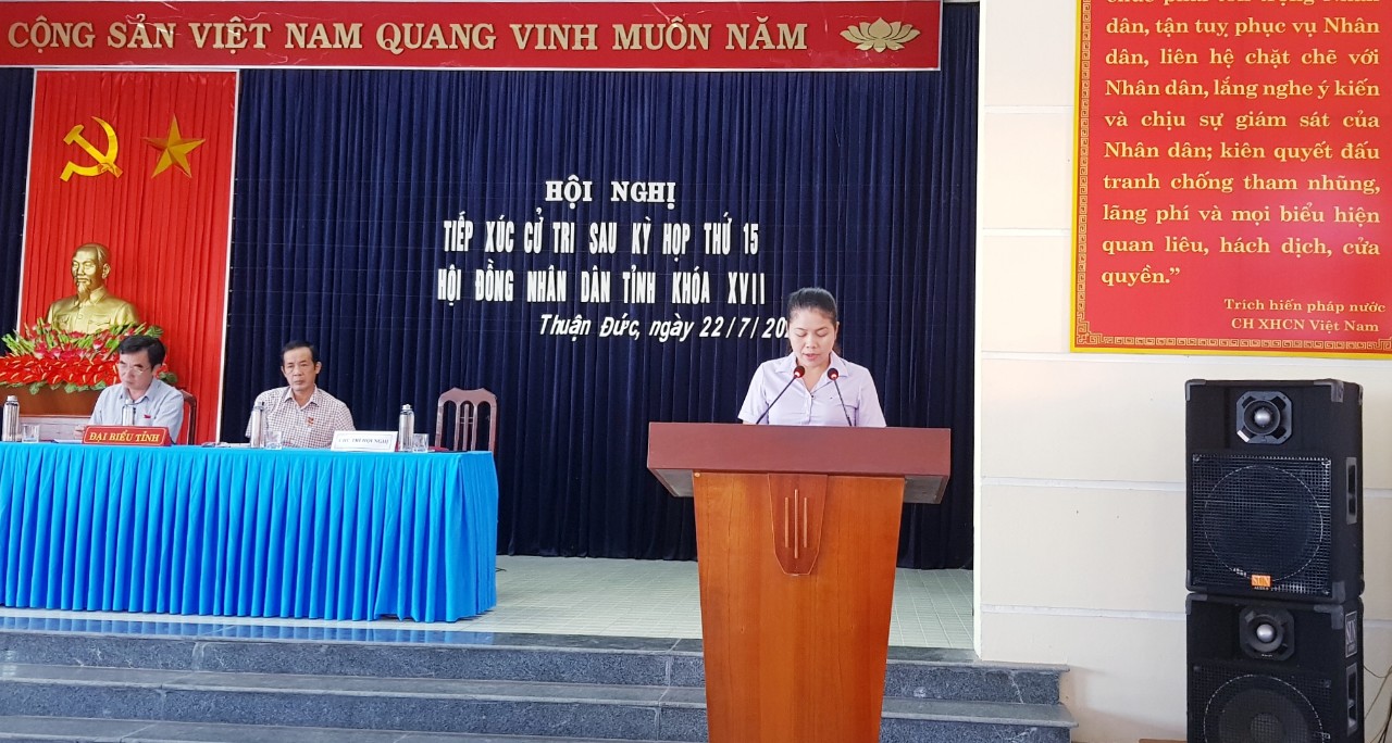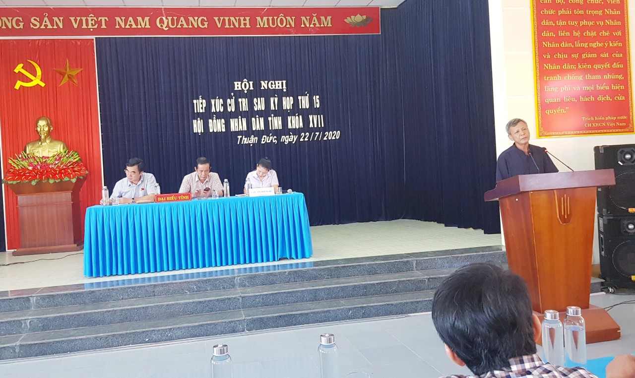 Ảnh: Cử tri xã Thuận Đức phát biểu ý kiến