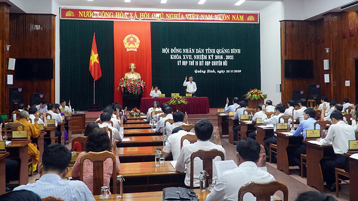 Tại kỳ họp này, HĐND tỉnh đã xem xét, thảo luận và thông qua 19 nghị quyết về: bổ sung, điều chỉnh kế hoạch thu hồi đất, chuyển mục đích sử dụng đất năm 2020; phê duyệt chủ trương chuyển mục đích sử dụng rừng sang mục đích khác; phê duyệt, điều chỉnh chủ trương đầu tư 16 dự án đầu tư công; điều chỉnh danh mục công trình đã được bổ sung vào quy hoạch sử dụng đất đến năm 2020 tỉnh Quảng Bình tại Nghị quyết số 104/NQ-HĐND ngày 05/6/2020 của HĐND tỉnh.