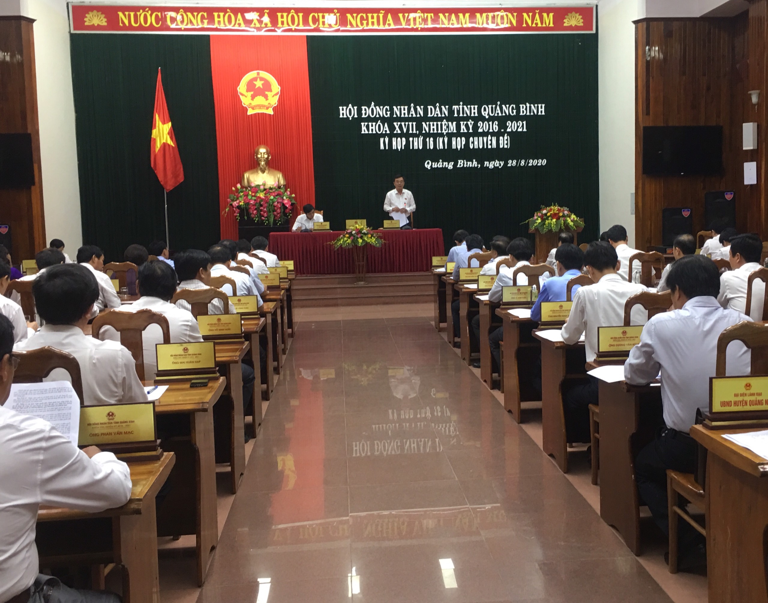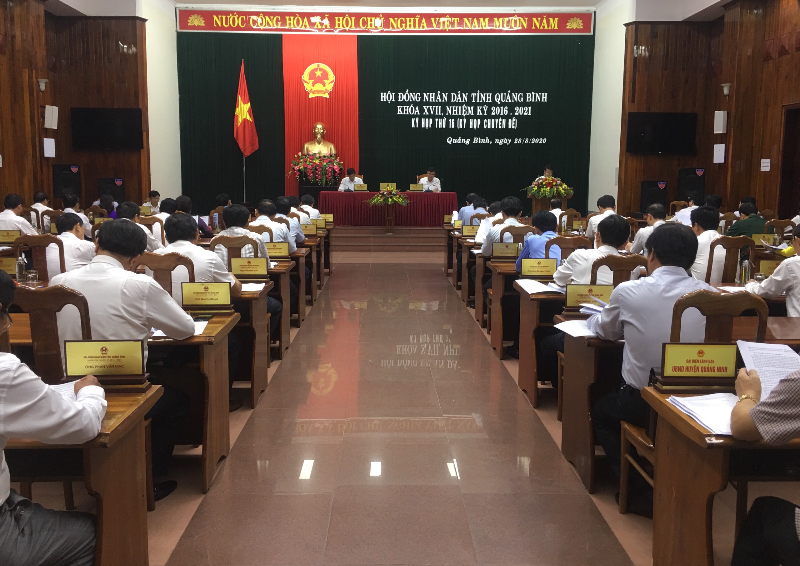 Tại kỳ họp này, HĐND đã nghe các Ủy viên UBND tỉnh trình bày các Tờ trình đề nghị HĐND tỉnh thông qua 19 dự thảo nghị quyết về phê duyệt chủ trương chuyển mục đích sử dụng rừng sang mục đích khác trên địa bàn tỉnh Quảng Bình; bổ sung, điều chỉnh kế hoạch thu hồi đất; chuyển mục đích sử dụng đất năm 2020 trên địa bàn tỉnh Quảng Bình; điều chỉnh danh mục công trình đã được bổ sung vào quy hoạch sử dụng đất đến năm 2020 tỉnh Quảng Bình tại Nghị quyết số 104/NQ-HĐND ngày 05/6/2020 của HĐND tỉnh và phê duyệt, điều chỉnh chủ trương đầu tư 16 dự án đầu tư công.