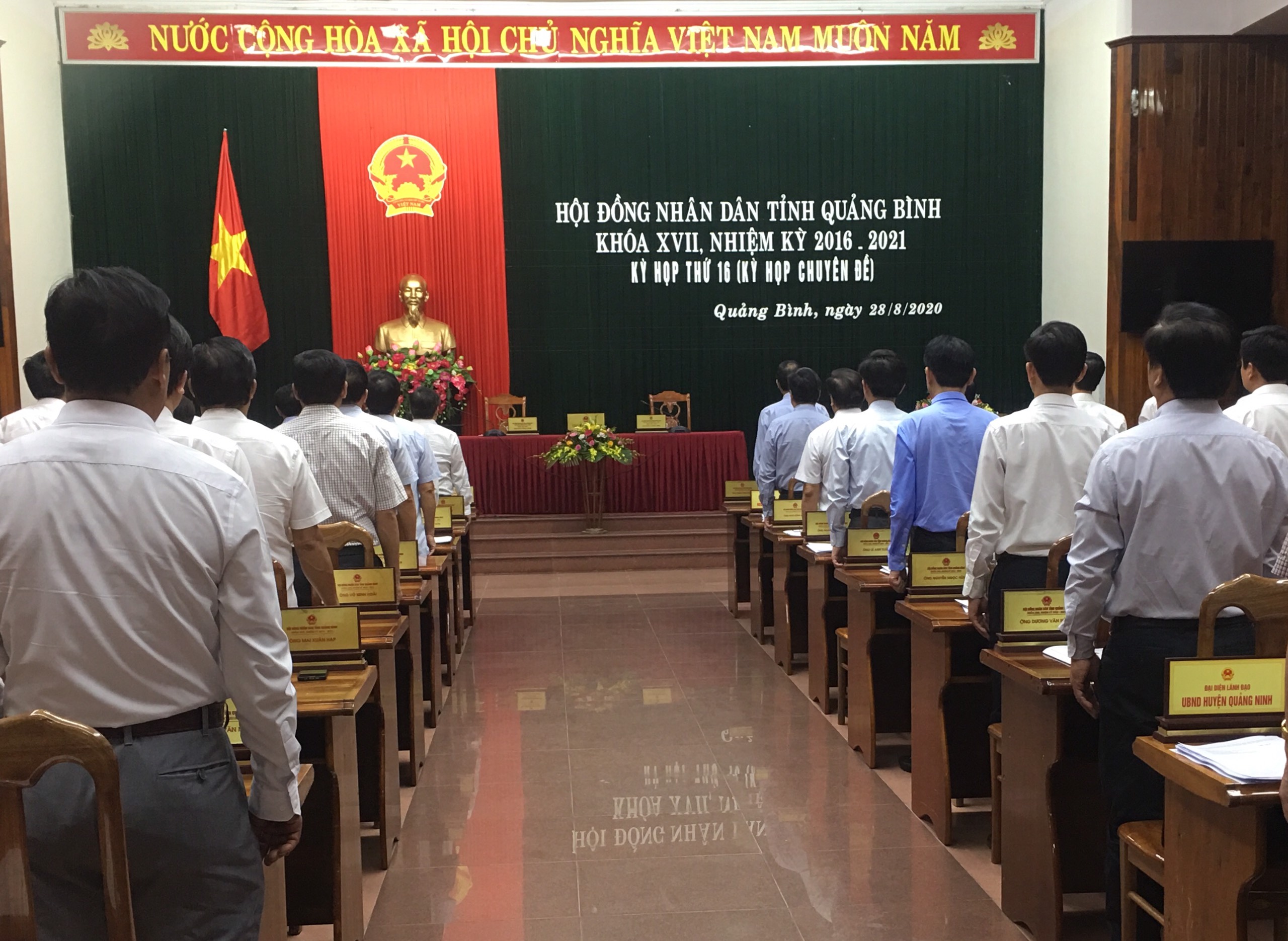 Chiều ngày 28/8/2019, HĐND tỉnh tổ chức Kỳ họp thứ 16 (kỳ họp chuyên đề) để xem xét thông qua một số nghị quyết quan trọng nhằm giải quyết vấn đề phát sinh, đáp ứng yêu cầu phát triển kinh tế - xã hội của tỉnh. Các đồng chí: Nguyễn Công Huấn, Ủy viên Ban Thường vụ Tỉnh ủy, Phó Chủ tịch thường trực HĐND tỉnh; Nguyễn Lương Bình, Tỉnh ủy viên, Phó Chủ tịch HĐND tỉnh đồng chủ tọa kỳ họp.