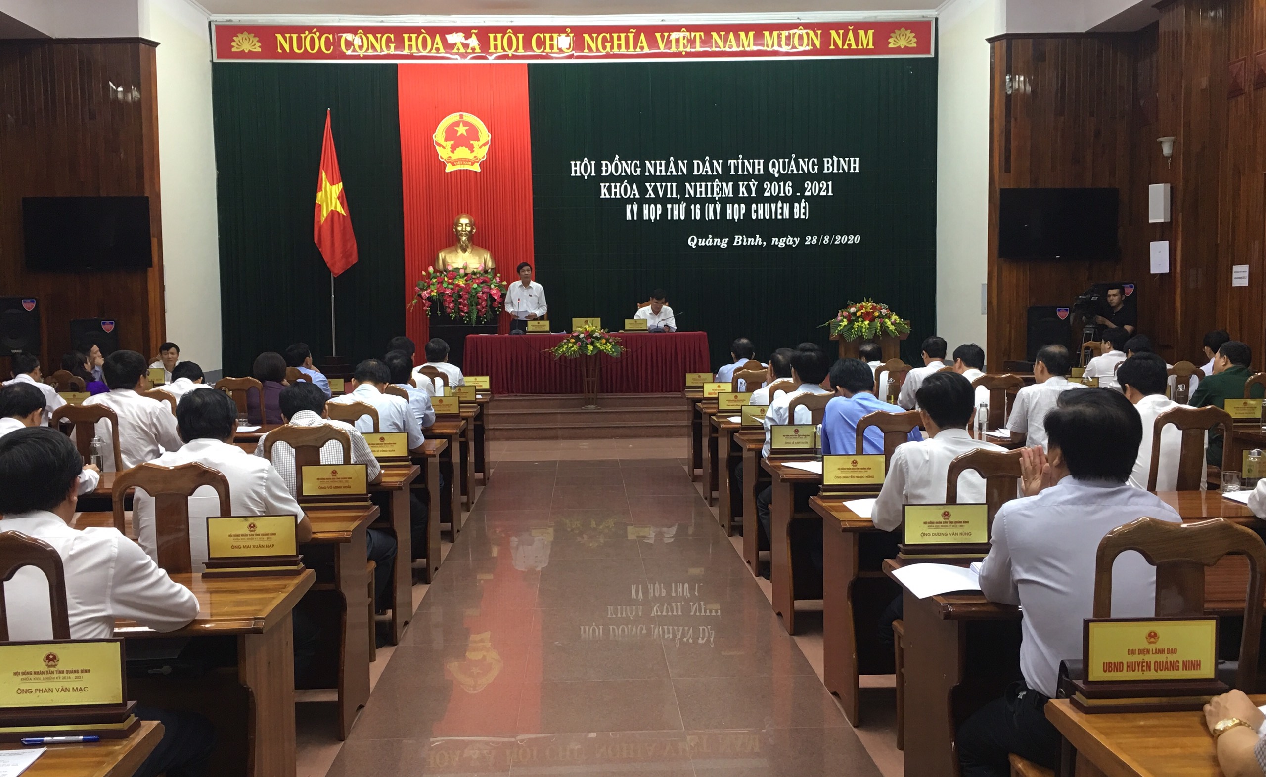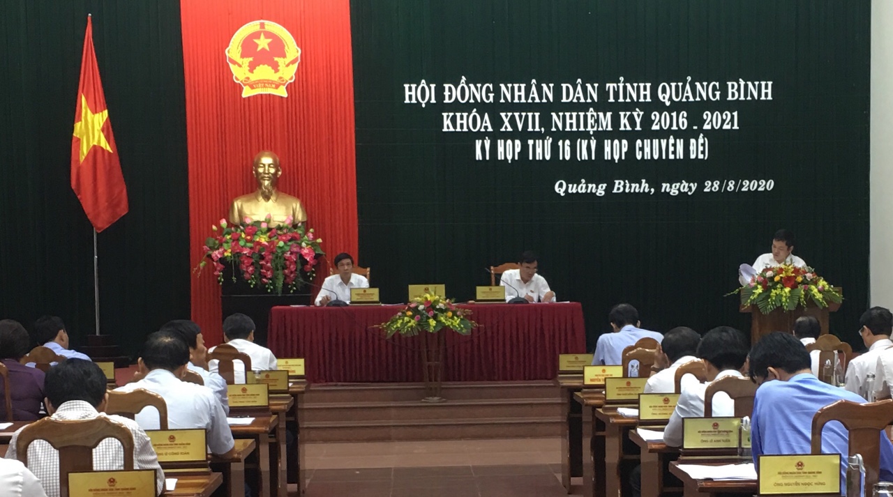 Trên cơ sở báo cáo thẩm tra của Ban Kinh tế - Ngân sách Hội đồng nhân dân tỉnh, HĐND tỉnh đã xem xét, thảo luận và thông qua 19 nghị quyết tại kỳ họp lần này. Cụ thể: (1) Nghị quyết phê duyệt chủ trương chuyển mục đích sử dụng rừng sang mục đích khác trên địa bàn tỉnh Quảng Bình; (2) Nghị quyết bổ sung, điều chỉnh kế hoạch thu hồi đất; chuyển mục đích sử dụng đất năm 2020 trên địa bàn tỉnh Quảng Bình; (3) Nghị quyết điều chỉnh danh mục công trình đã được bổ sung vào quy hoạch sử dụng đất đến năm 2020 tỉnh Quảng Bình tại Nghị quyết số 104/NQ-HĐND ngày 05/6/2020 của HĐND tỉnh; (4) Nghị quyết phê duyệt chủ trương đầu tư dự án đường giao thông nông thôn nội vùng thôn Tân Tiến, xã Hoá Hợp, huyện Minh Hoá; (5) Nghị quyết phê duyệt chủ trương đầu tư dự án đường giao thông nông thôn nội vùng thôn Đặng Hóa, xã Hoá Sơn, huyện Minh Hoá; (6) Nghị quyết phê duyệt chủ trương đầu tư dự án đường giao thông nông thôn nội vùng bản Mò O ồ ồ, xã Thượng Hoá, huyện Minh Hoá; (7) Nghị quyết phê duyệt chủ trương đầu tư dự án đường giao thông nông thôn nội vùng bản Dộ - Tà Vờng và bản Lòm, xã Trọng Hoá, huyện Minh Hoá (8) Nghị quyết phê duyệt chủ trương đầu tư dự án Nhà sinh hoạt cộng đồng bản Tà Rà, xã Dân Hoá, huyện Minh Hoá; (9) Nghị quyết phê duyệt chủ trương đầu tư dự án Đường giao thông nông thôn nội vùng bản Cà Xèn, xã Thanh Hóa, huyện Tuyên Hóa; (10) Nghị quyết phê duyệt chủ trương đầu tư dự án đường giao thông nông thôn nội vùng bản Kè, xã Lâm Hoá, huyện Tuyên Hoá; (11) Nghị quyết phê duyệt chủ trương đầu tư dự án đường giao thông nông thôn nội vùng bản 39, xã Tân Trạch, huyện Bố Trạch; (12) Nghị quyết phê duyệt chủ trương đầu tư dự án Nâng cấp đường từ bản Nà Lâm, xã Trường Xuân đi xã Trường Sơn, huyện Quảng Ninh; (13) Nghị quyết về việc phê duyệt chủ trương đầu tư dự án Đường vào bản Rào Con; (14) Nghị quyết phê duyệt chủ trương đầu tư dự án khắc phục khẩn cấp sạt lở bờ sông Son đoạn qua xã Sơn Trạch và xã Hưng Trạch, huyện Bố Trạch và bờ sông Phú Vinh đoạn qua phường Đồng Sơn, thành phố Đồng Hới; (15) Nghị quyết phê duyệt chủ trương đầu tư dự án khắc phục, sửa chữa đập dâng Đức Phổ thuộc hệ thống thủy lợi Phú Vinh; (16) Nghị quyết phê duyệt chủ trương đầu tư dự án Khu dân cư thôn Thanh Mỹ, xã Thanh Thủy, huyện Lệ Thủy (giai đoạn 1); (17) Nghị quyết phê duyệt chủ trương đầu tư dự án Đường phục vụ công tác tuần tra và chữa cháy rừng xã Vĩnh Ninh, huyện Quảng Ninh; (18) Nghị quyết điều chỉnh chủ trương đầu tư dự án tuyến đường liên xã Quảng Xuân - Quảng Hưng, huyện Quảng Trạch; (19) Nghị quyết phê duyệt điều chỉnh chủ trương đầu tư các dự án phát triển quỹ đất trên địa bàn tỉnh.