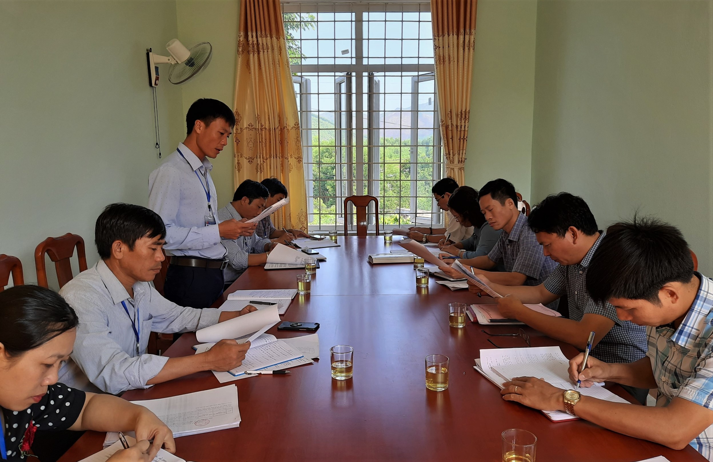 Ảnh: Đại diện lãnh đạo UBND xã Ngư Hóa báo cáo với Đoàn giám sát.