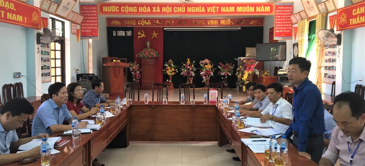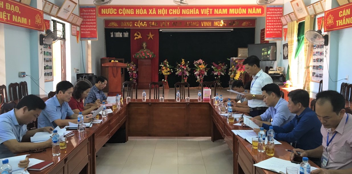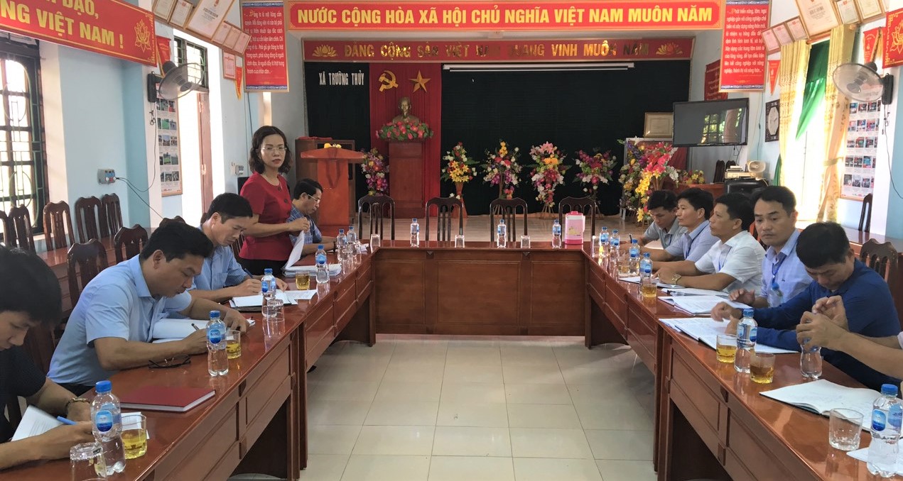 Ảnh: Đại diện lãnh đạo UBND xã Trường Thủy báo cáo với Đoàn giám sát.
