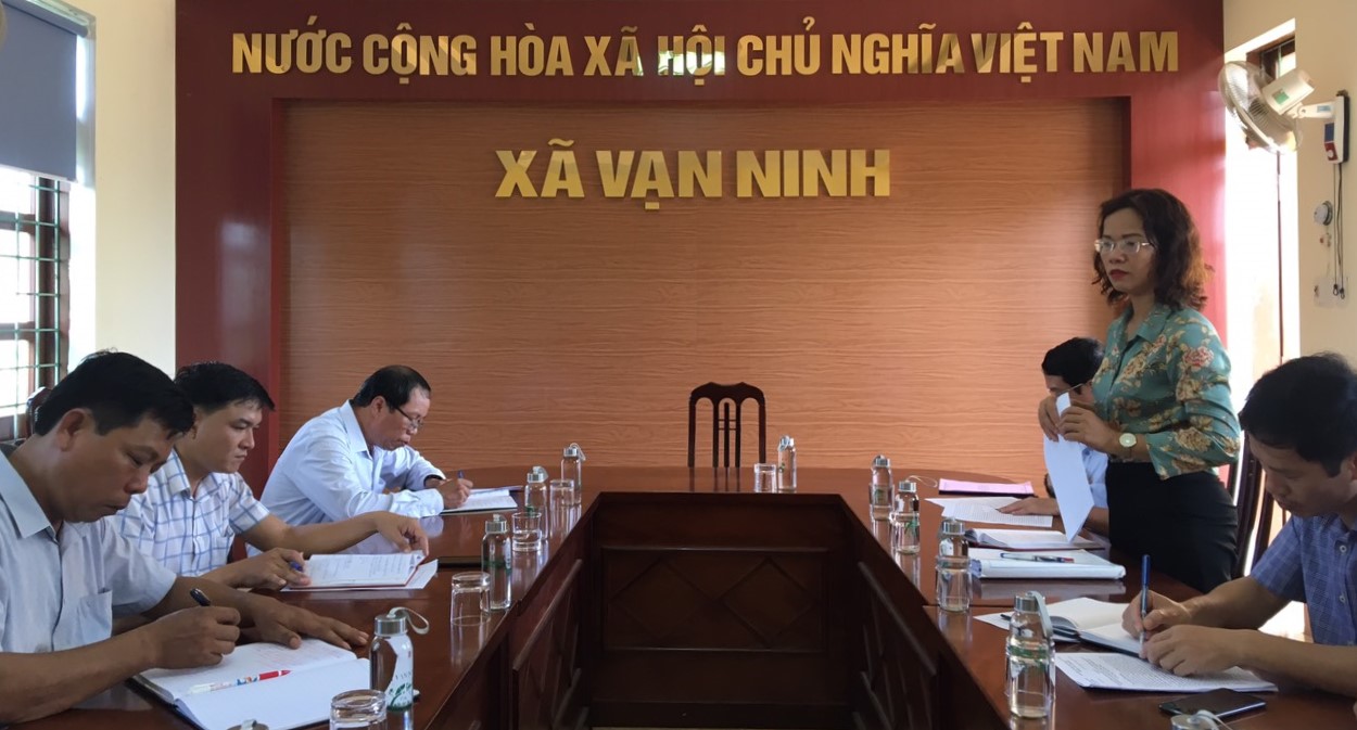 Ảnh: Đại diện lãnh đạo UBND xã vạn Ninh báo cáo với Đoàn giám sát.