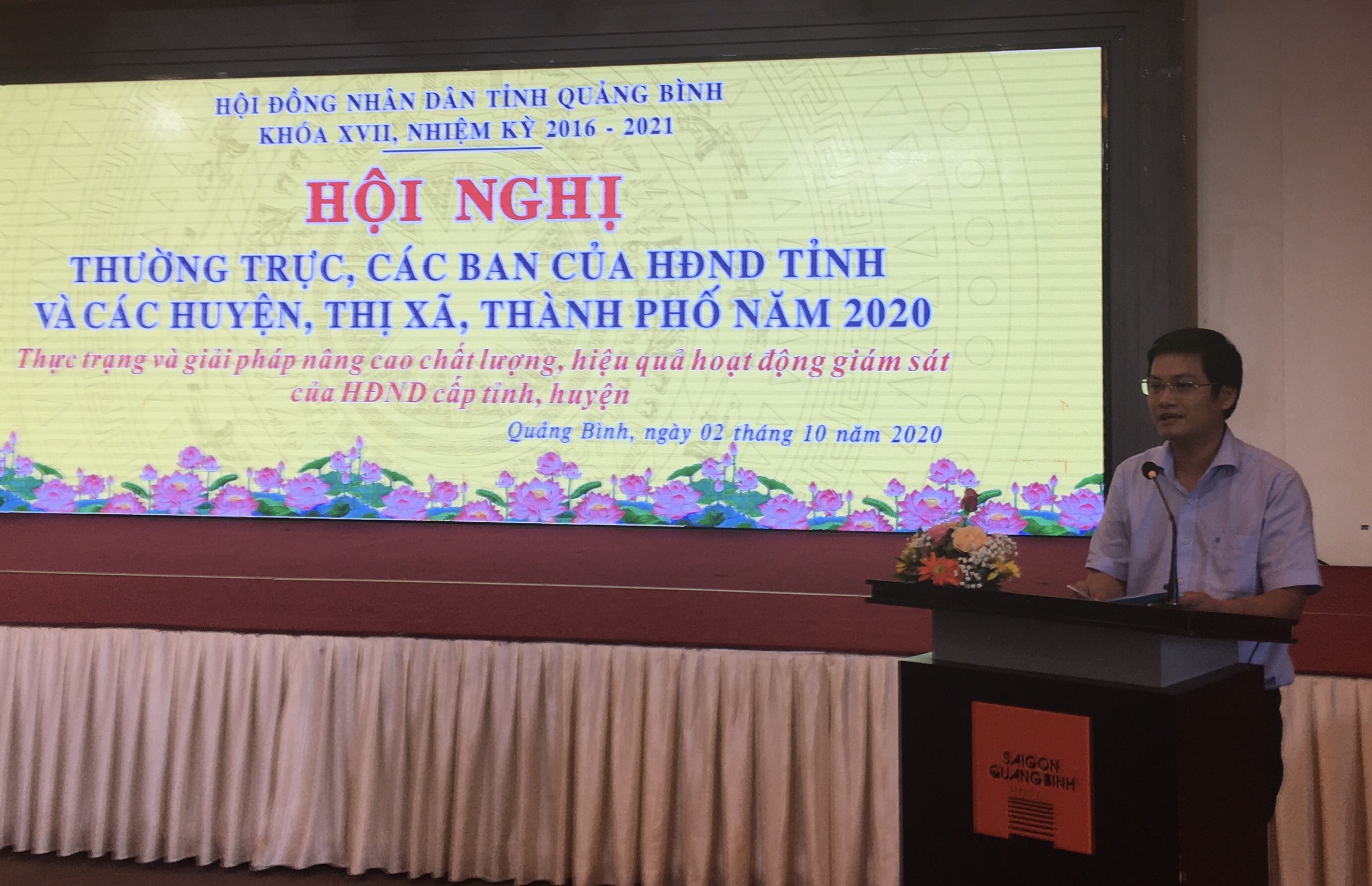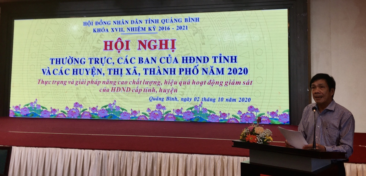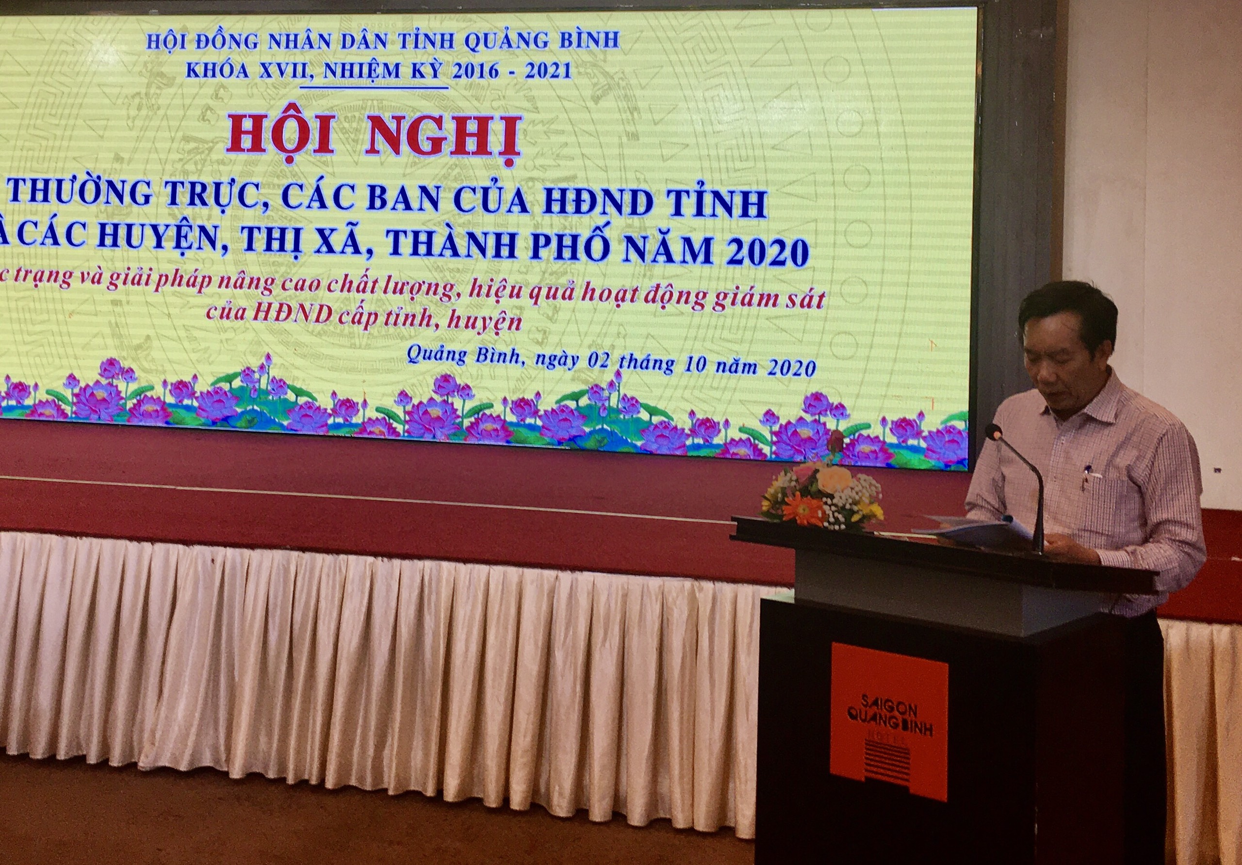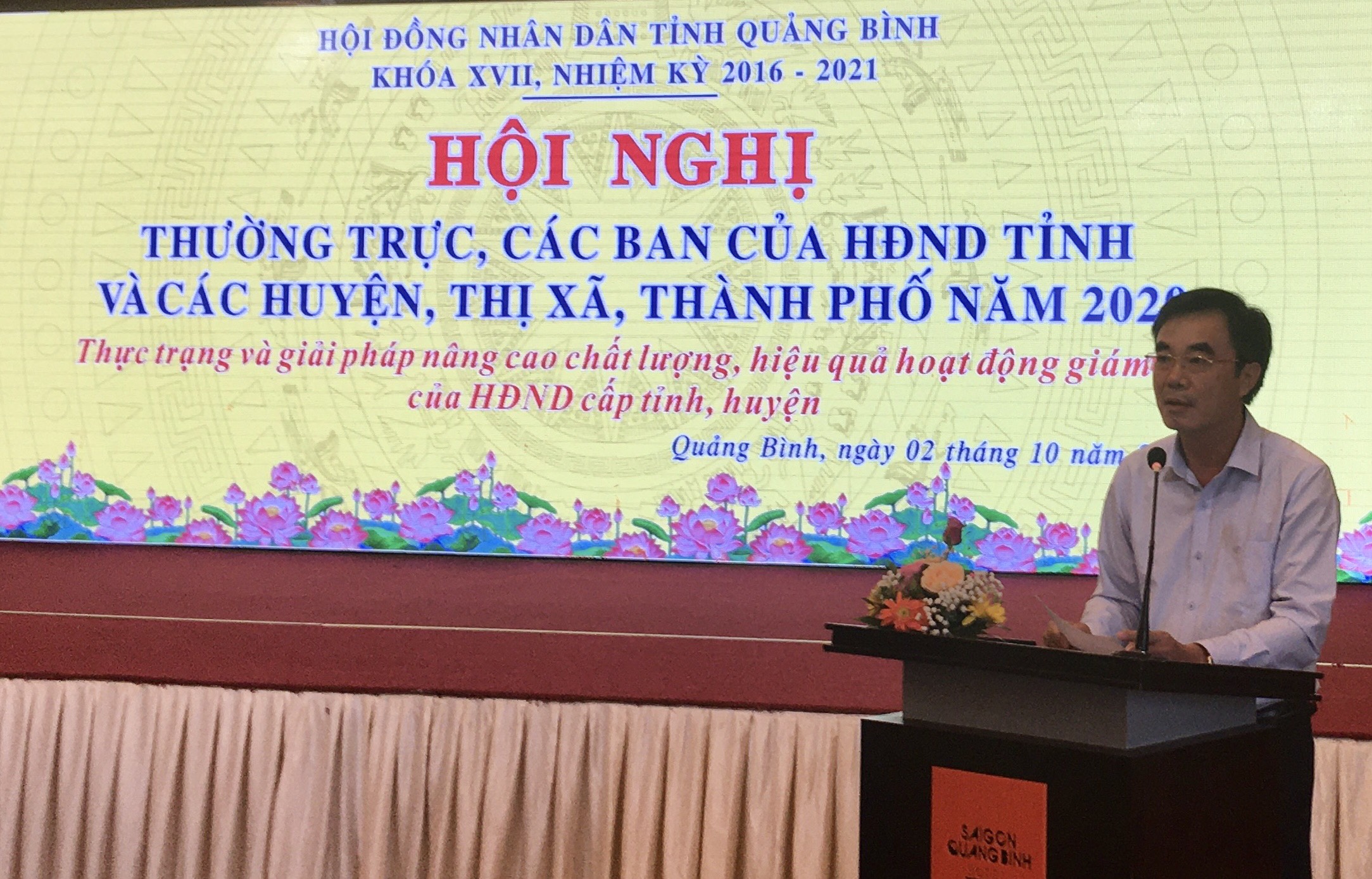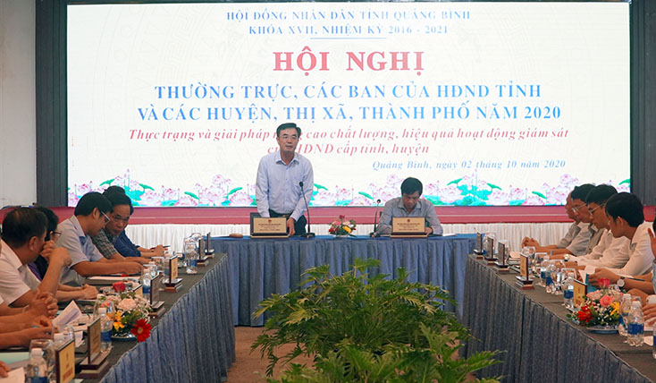 Ngày 02/10/2020, tại thành phố Đồng Hới, Thường trực HĐND tỉnh tổ chức Hội nghị Thường trực, các Ban của HĐND tỉnh và các huyện, thị xã, thành phố năm 20120 với chủ đề “Thực trạng và giải pháp nâng cao chất lượng, hiệu quả giám sát của HĐND cấp tỉnh, cấp huyện”