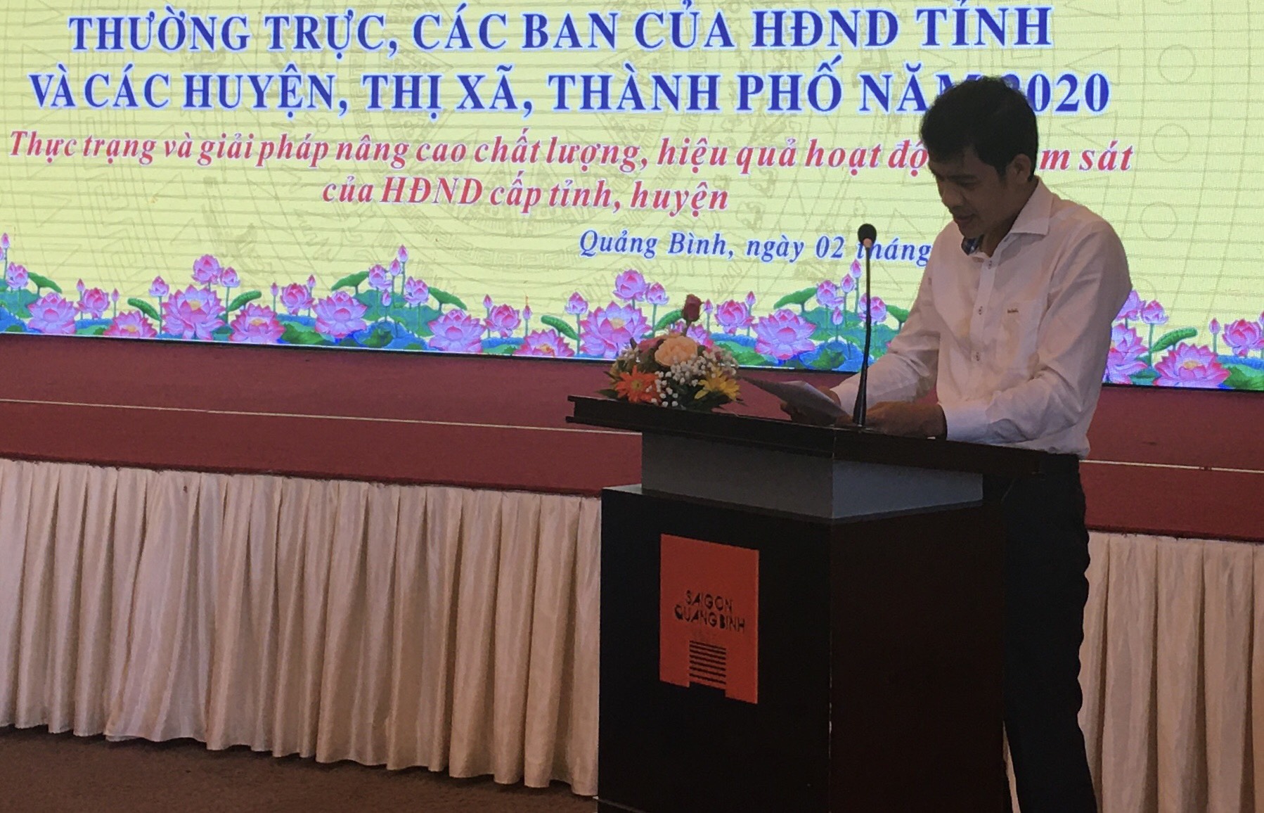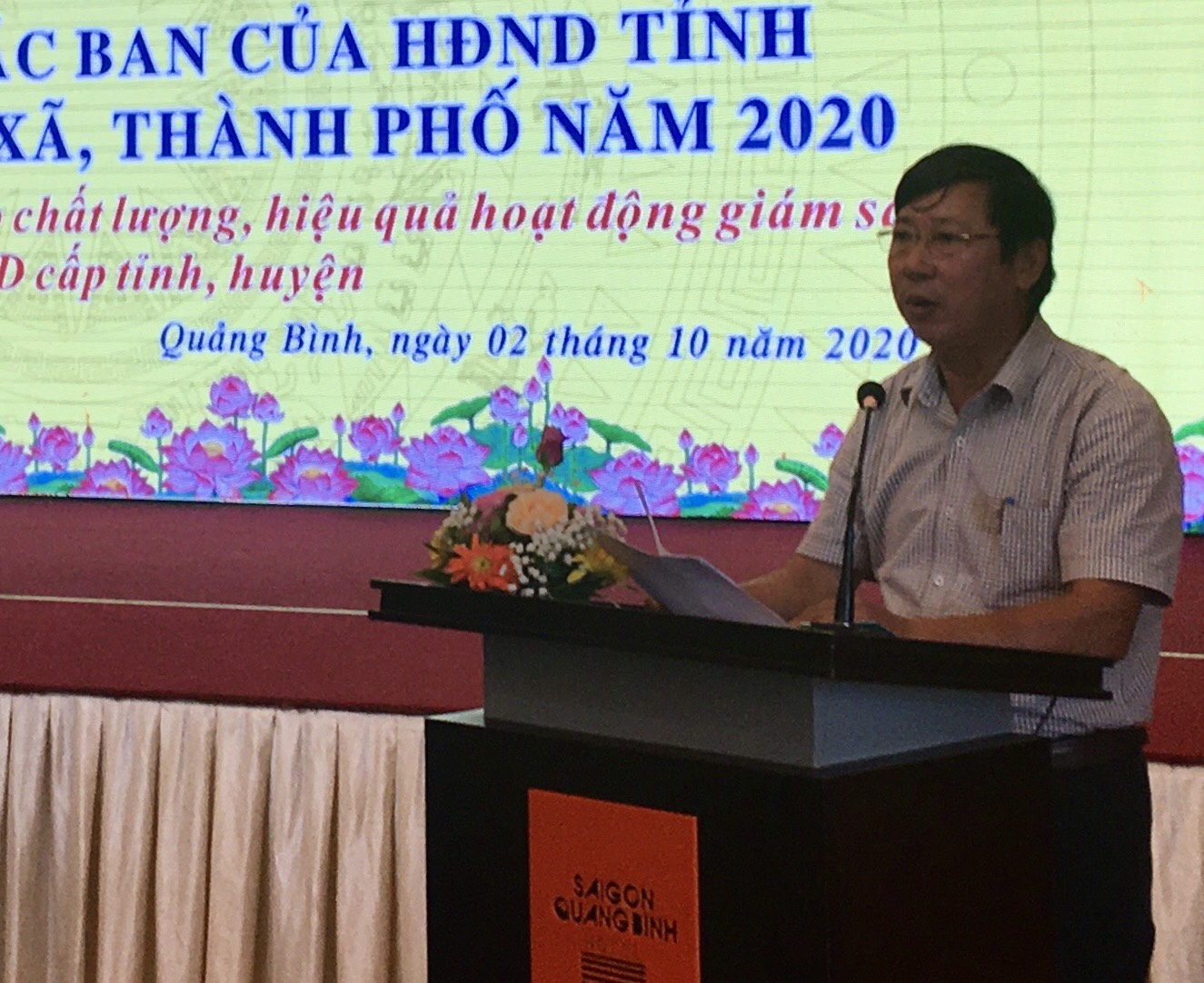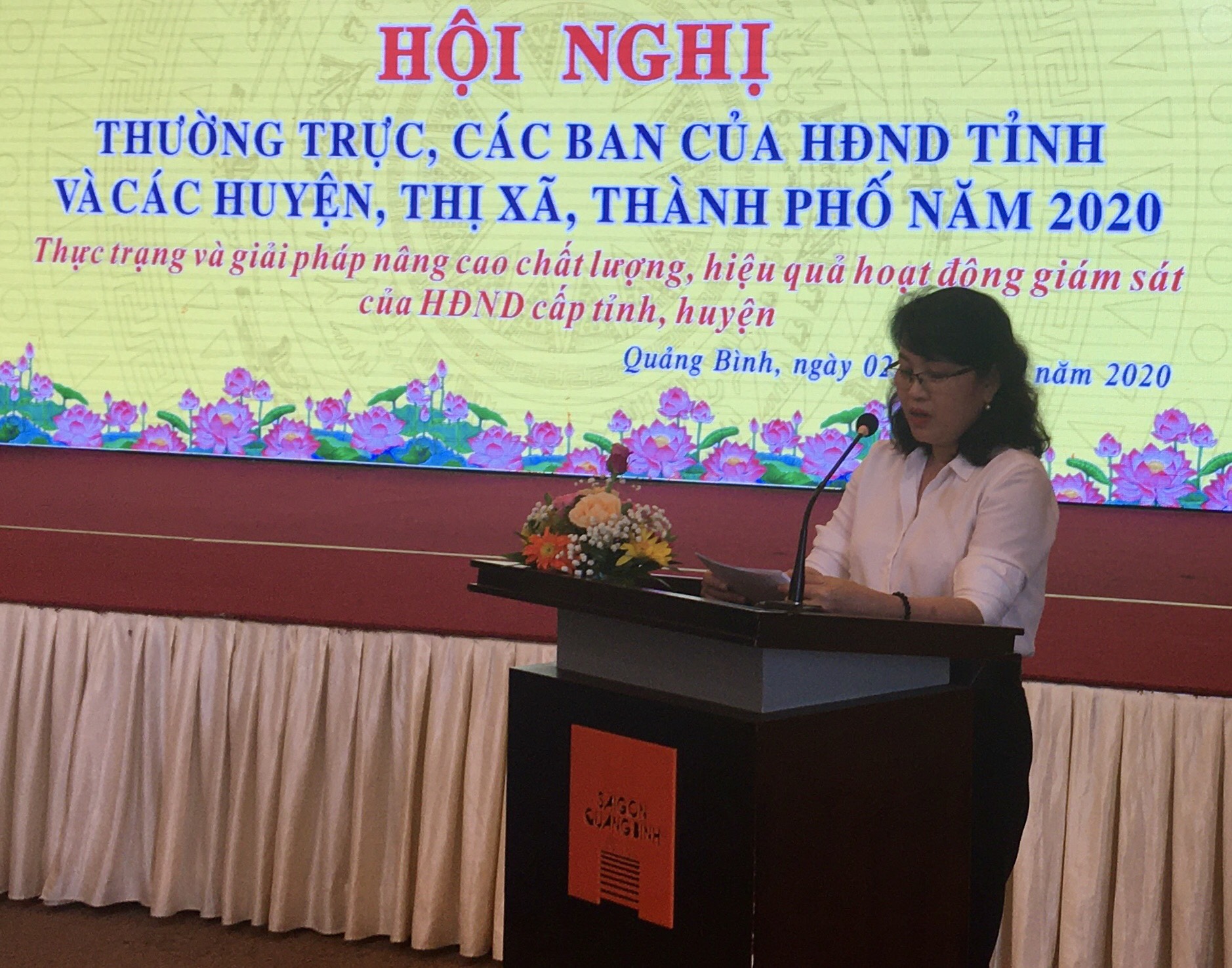 Ngày 02/10/2020, tại thành phố Đồng Hới, Thường trực HĐND tỉnh tổ chức Hội nghị Thường trực, các Ban của HĐND tỉnh và các huyện, thị xã, thành phố năm 20120 với chủ đề “Thực trạng và giải pháp nâng cao chất lượng, hiệu quả giám sát của HĐND cấp tỉnh, cấp huyện”